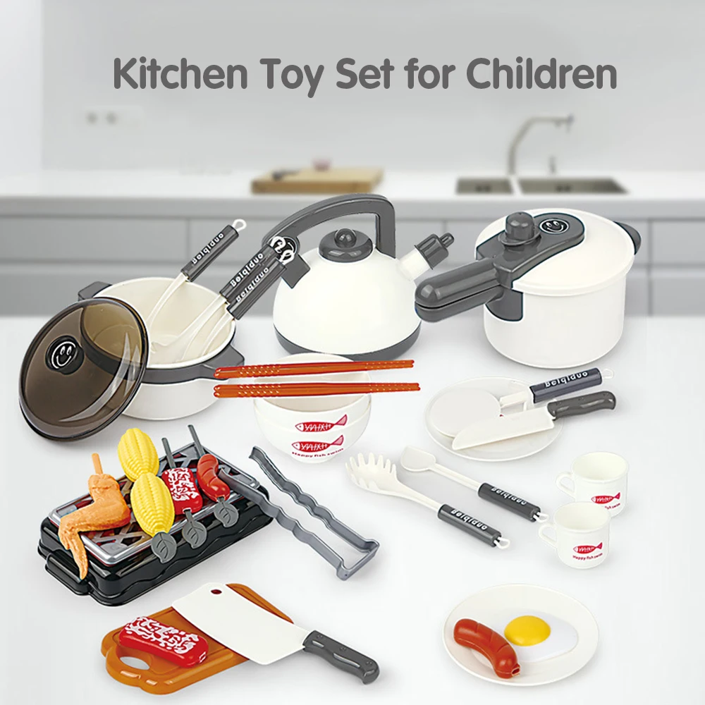 В комплект входит 24 шт. Аксессуары для посуды, удовлетворяющие воображение детей на кухне.