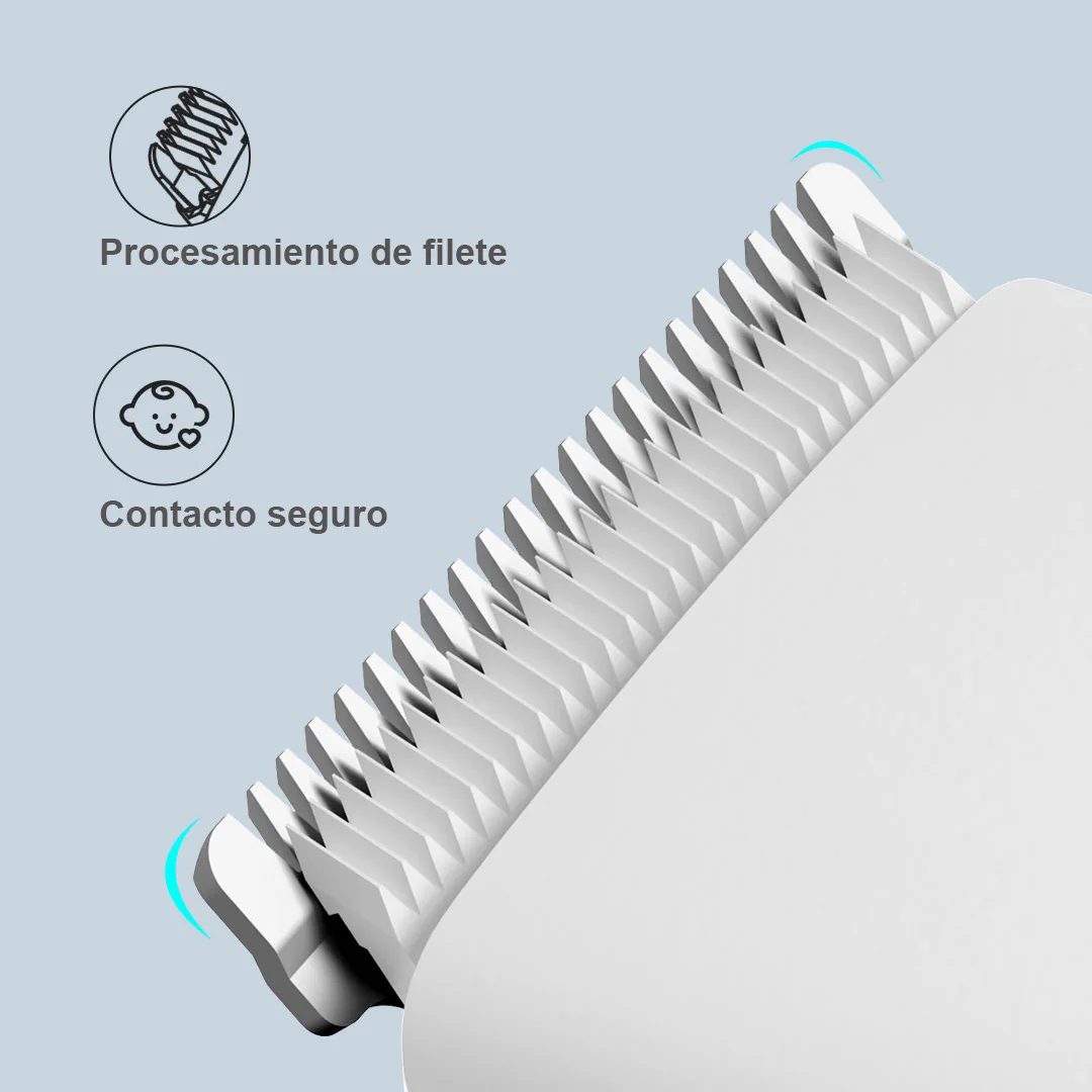 Части режущей головки и расчески для позиционирования, которые контактируют с кожей, округлены для обеспечения безопасности и комфорта процесса стрижки. Головка машинки для стрижки волос состоит из подвижного ножа и статичный нож. Комбинация подвижного ножа и статичный нож были строго разработаны и протестированы для безопасности, так что когда машинка для стрижки работает, она может безопасно связаться с головой под любым углом.