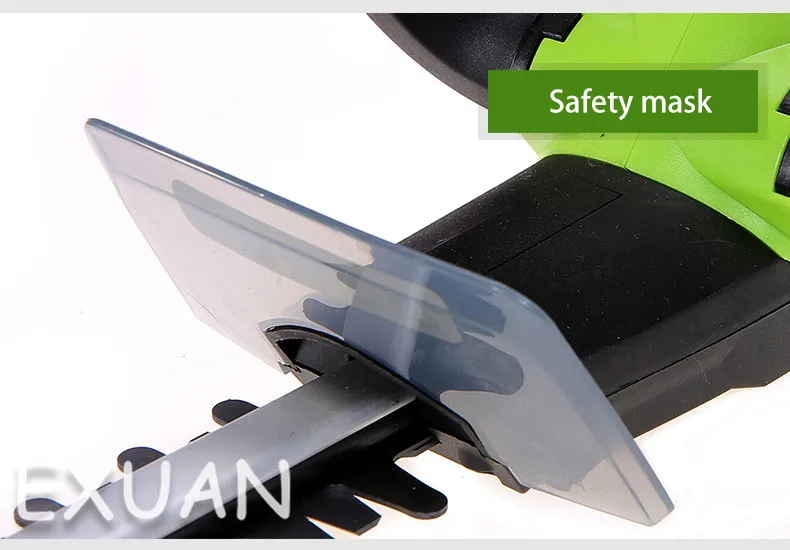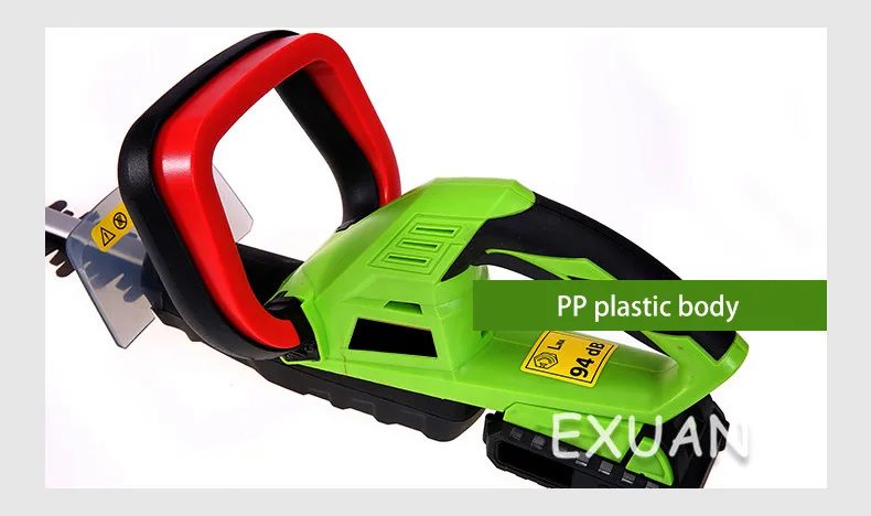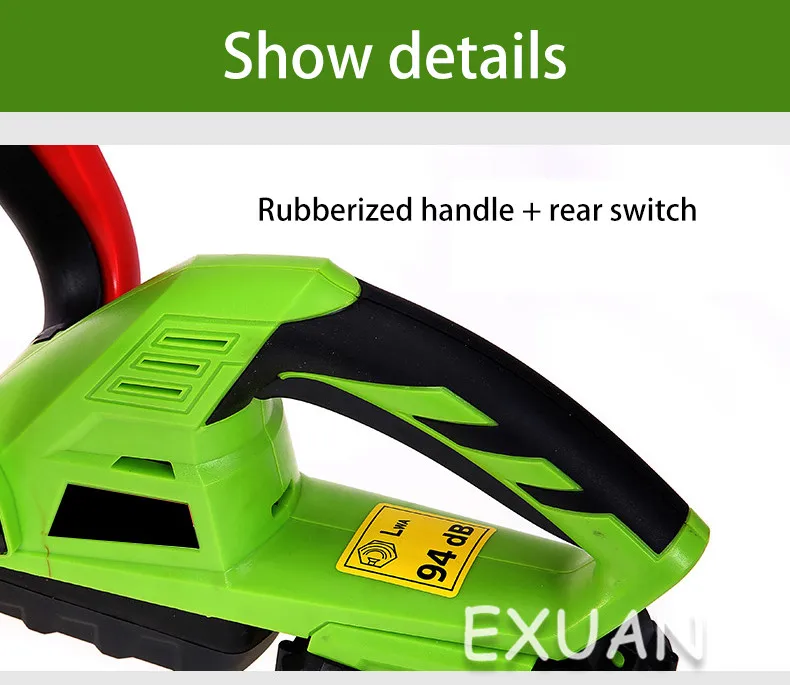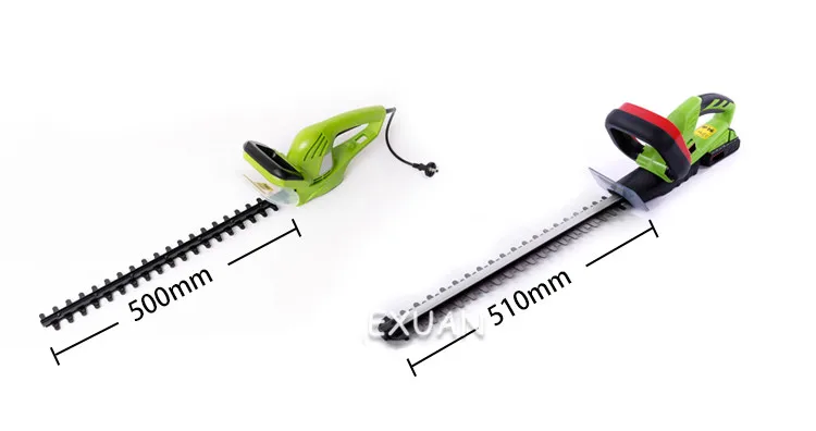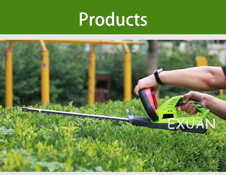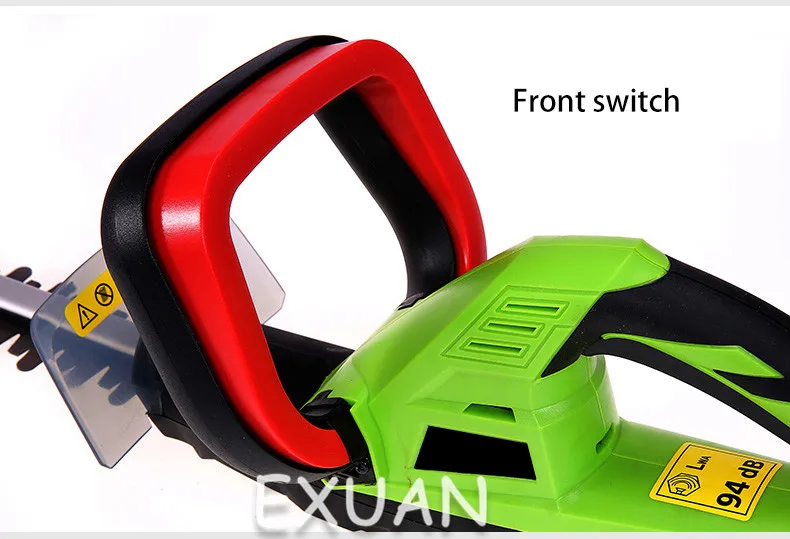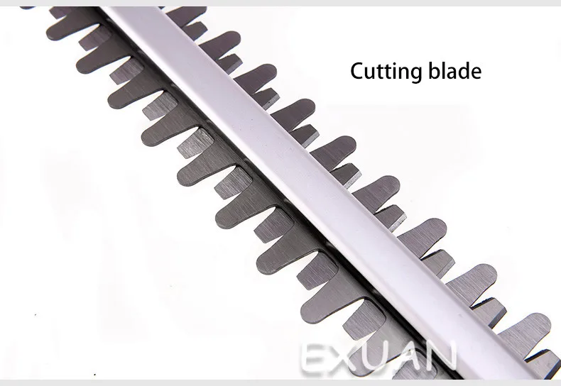 Название продукта: триммер для живой изгороди переменного тока (штепсельная вилка) Модель: HDL 600w Скорость без нагрузки: 1700 Длина лезвия: 500 мм Длина резки: 480 мм Объем резки: 16 мм Вес: 3 кг Название продукта: триммер для живой изгороди постоянного тока (зарядка) Модель: ASYHT01510 Скорость без нагрузки: 1400 Аккумулятор: 20 в 1,5 Ач Время зарядки: 4 часа Длина лезвия: 510 мм Длина резки: 457 мм Объем резки: 15 мм Время работы без нагрузки: 55 минут Вес: 2,4 Кг Примечания на подвесном крючке: При использовании машины обязательно Повесьте шнур питания на крючок на ручке машины, В противном случае перемещение и вытягивание во время использования легко приведет к ослаблению проводов на хвостовом соединении и ухудшению контакта. Запуск шаги: 1. Машина запускается только нажатием на передние и задние двойные переключатели обеими руками. 2. Отпустите выключатель для того чтобы остановить машину в течение 0,2 секунд, чтобы защитить личной безопасности. 3. Двойное изолированное шасси оснащено защитной удлинительной линией кабеля, которая предотвращает утечку и Электрический шок.