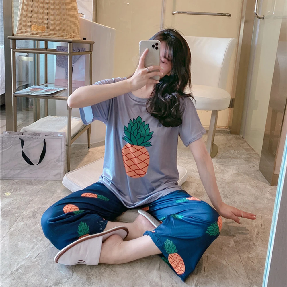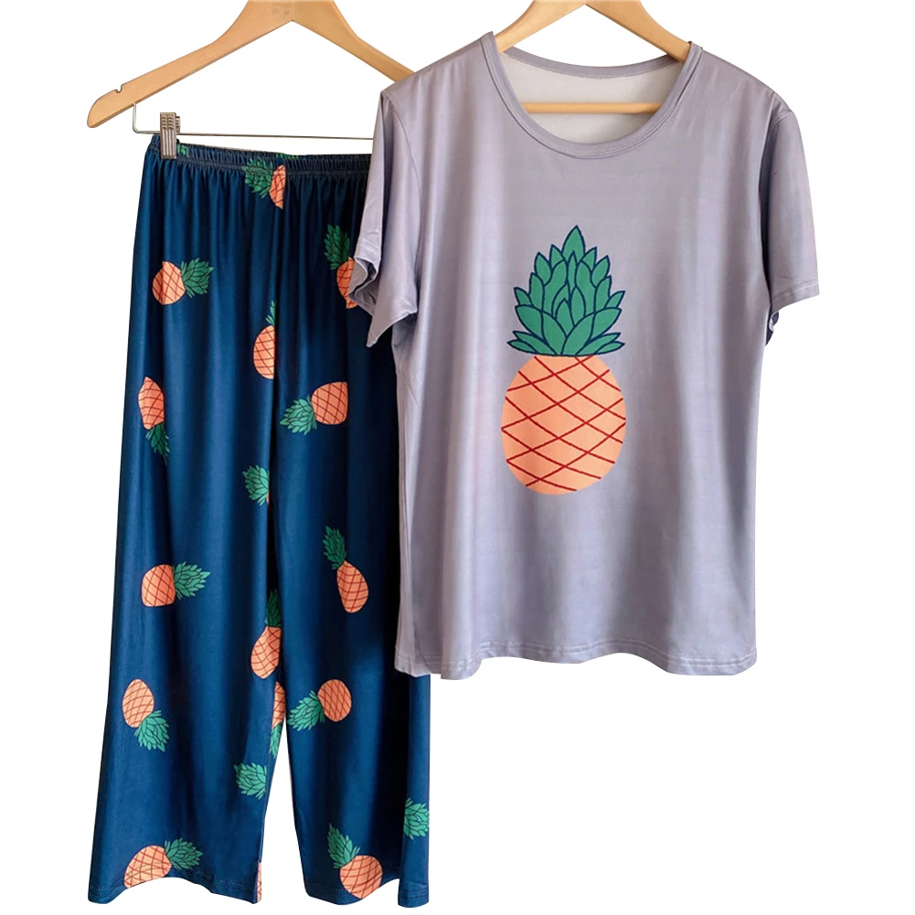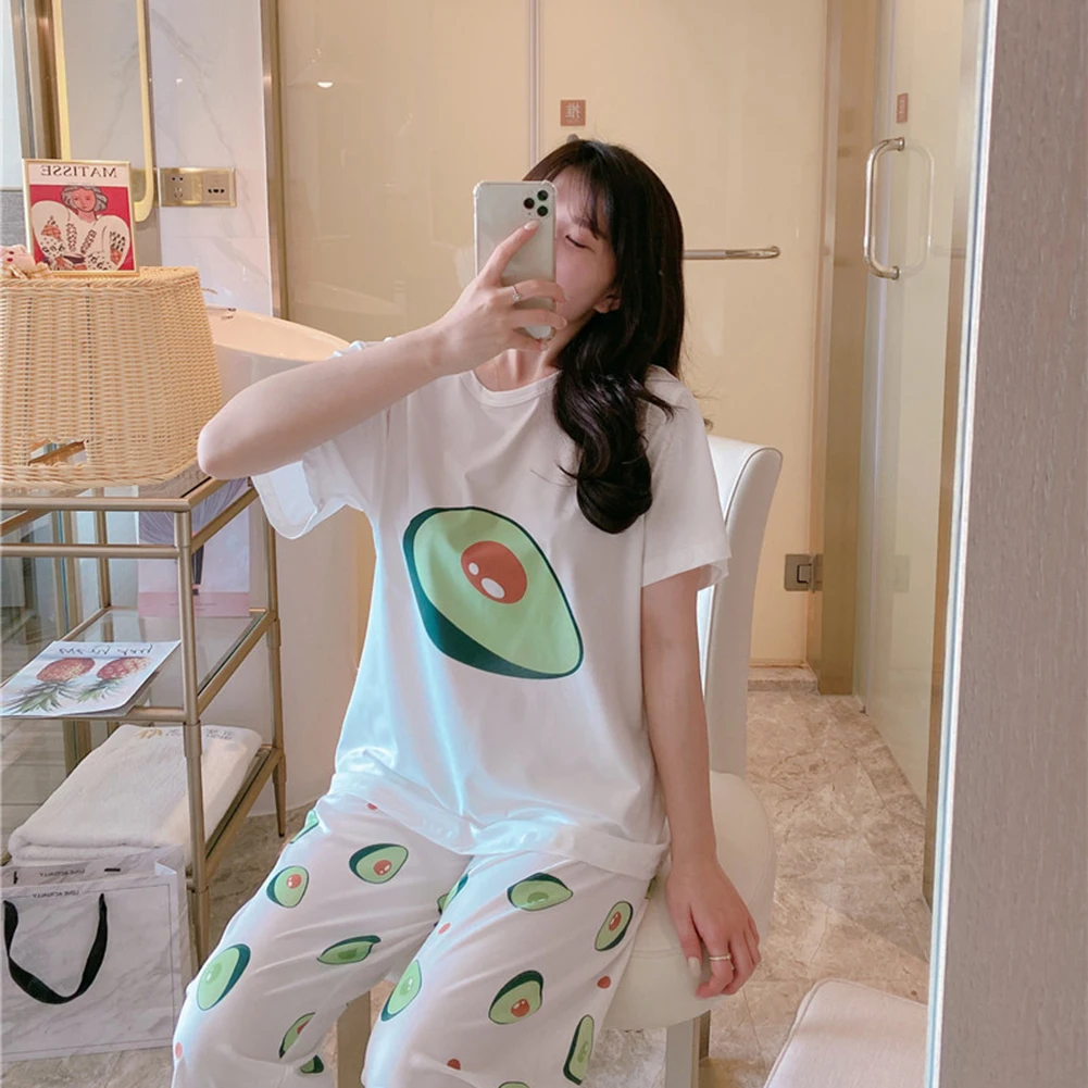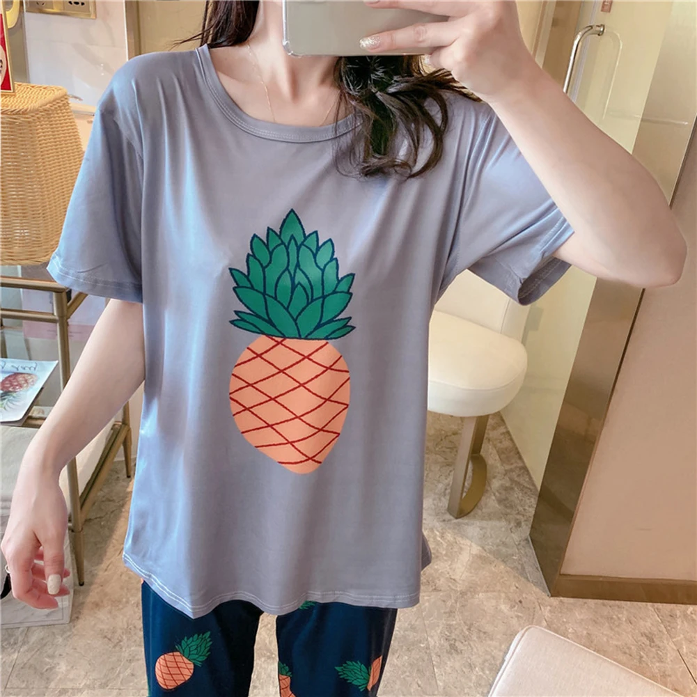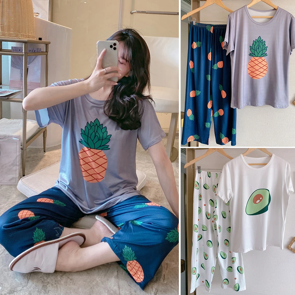 Женская свободная футболка с коротким рукавом и принтом ананаса, авокадо и фруктов, пижамный комплект с топом и штанами