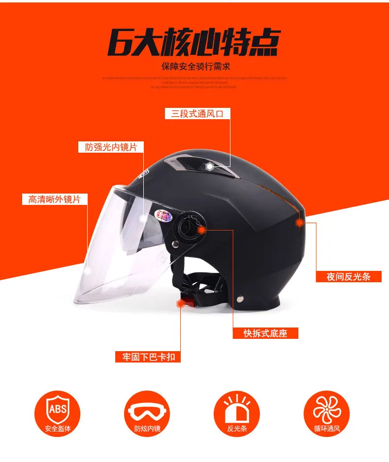 Мотоциклетный шлем самокат велосипед с открытым лицом Половина бейсбольная кепка анти-УФ безопасность жесткая шляпа мотоцикл двойной козырек шлем светильник полоса
