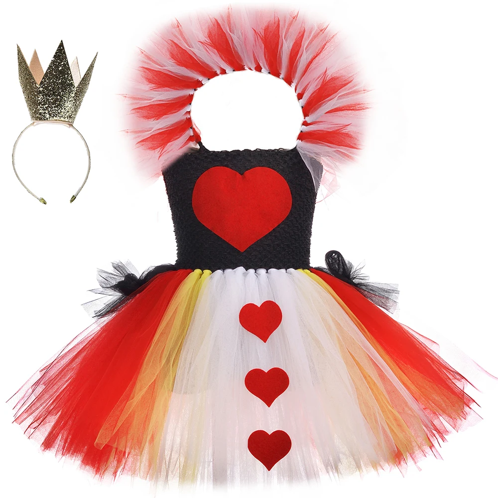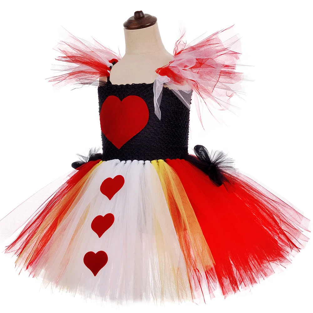Черное и красное платье-пачка «Королева сердца» с воротником «Алиса в стране чудес»; Карнавальный костюм для детей; Карнавальные Вечерние платья на Хэллоуин
