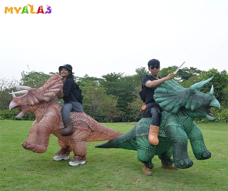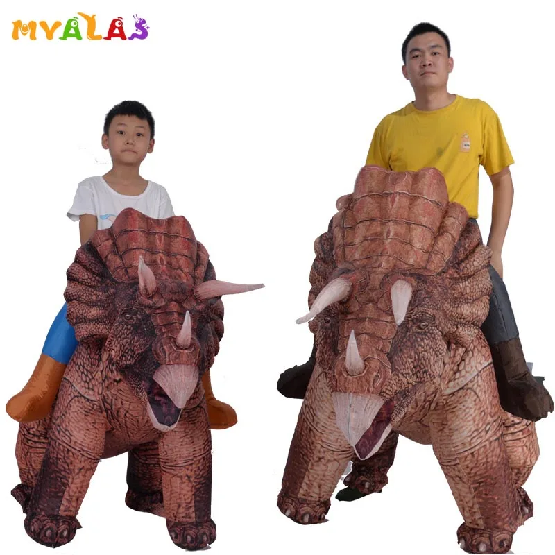 Надувной динозавр T-REX костюмы на Хэллоуин для взрослых детей женщин мужчин Blowup Triceratops полное тело Карнавал косплей талисман Вечерние