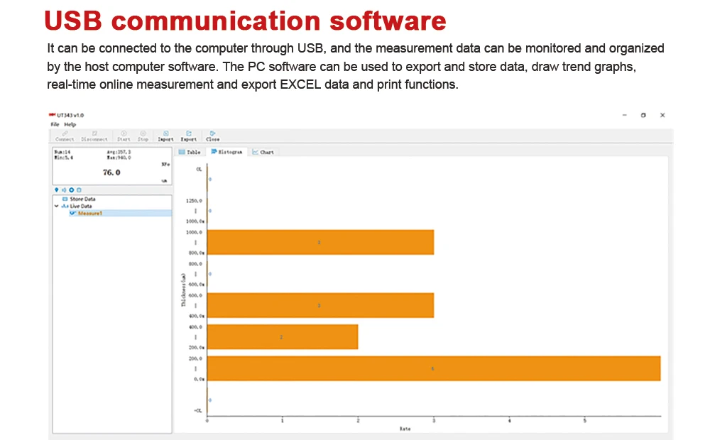 Толщиномер покрытия UT343D-это высокоэффективный датчик толщины композитного покрытия со встроенным утюгом