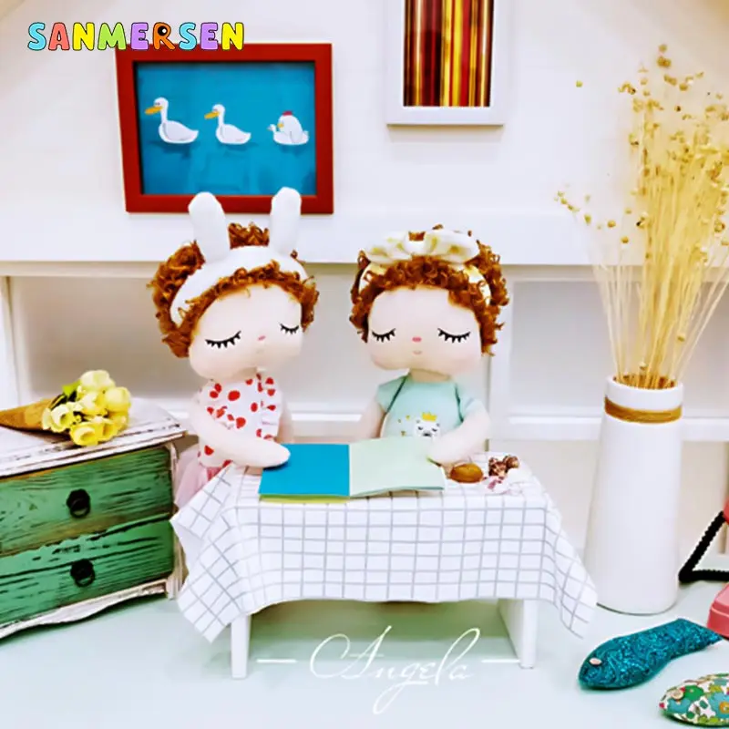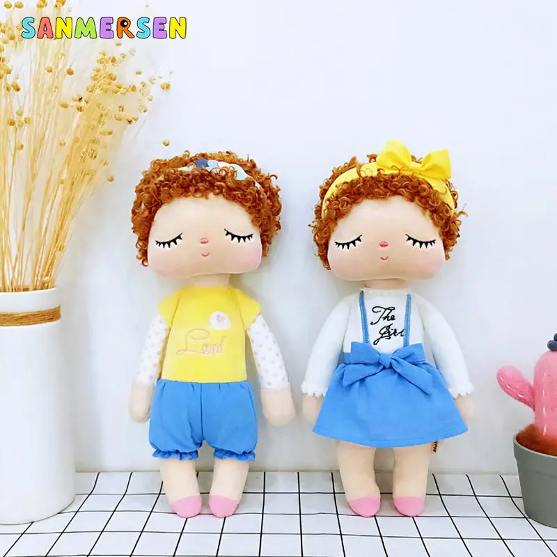 SANMERSEN 34 см вьющиеся волосы Ангела плюшевые с нежным кроличьим милые Животные для детей игрушки кукла Анджела для девочек на день рождения; Рождественский подарок; Платье