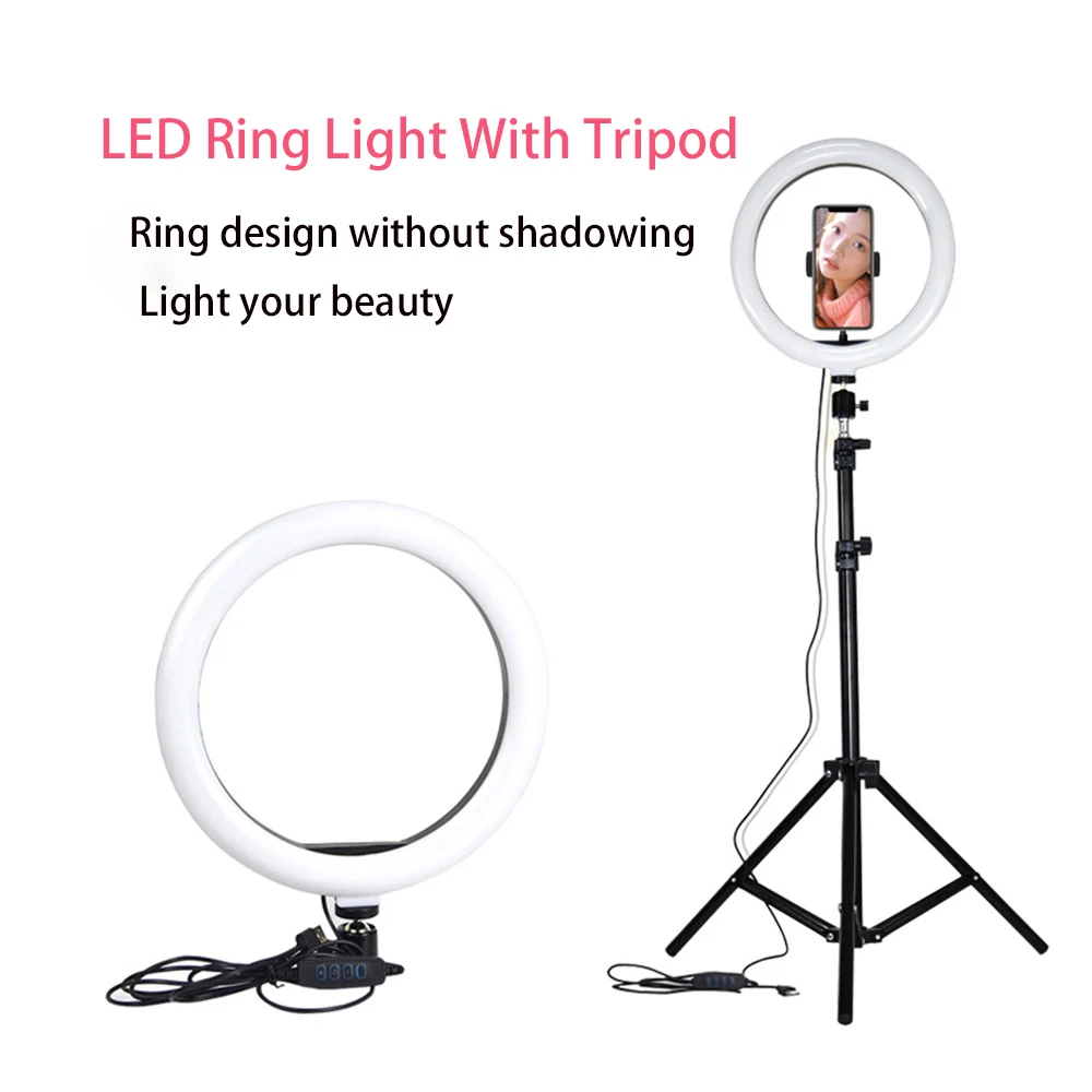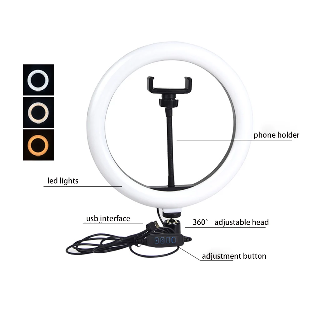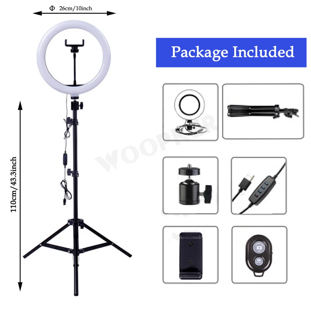 1*110 см штатив 1*10 "кольцевой светильник 1 * шаровая Головка 1 * Контроллер Bluetooth (батарея в комплект не входит!) 1 * зажим для телефона 1 * USB кабель питания