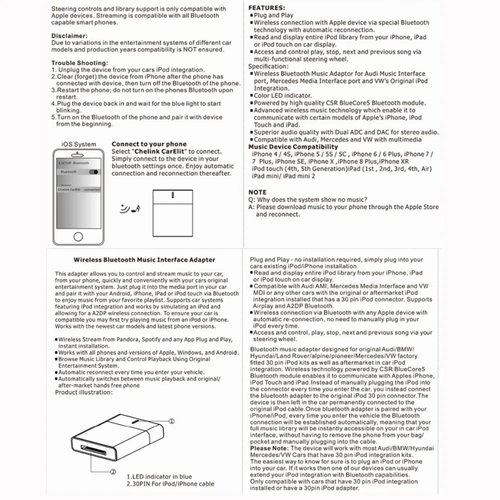 Беспроводной музыкальный адаптер Bluetooth для порта музыкального интерфейса Audi, порта медиа-интерфейса Mercedes и оригинальной интеграции VW.