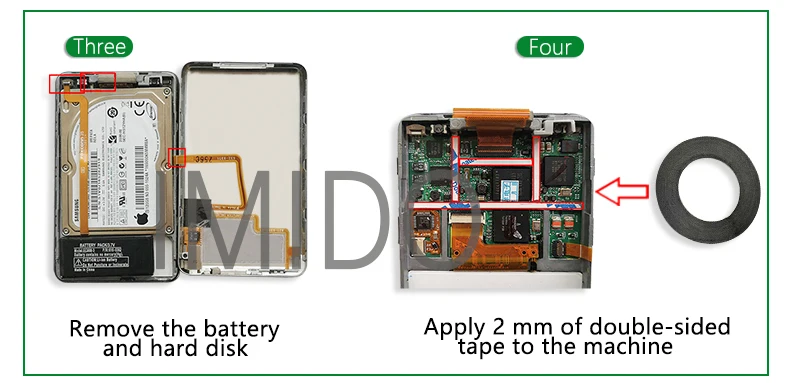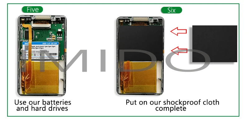 Для того, чтобы использовать SSD счастливо, пожалуйста, обратите внимание на следующие моменты во время установки1: Кабель, установленный на SSD, отличается от оригинального кабеля жесткого диска iPod. Поэтому, пожалуйста, не снимайте кабель с SSD. Вам нужно полностью удалить предыдущий жесткий диск и кабель, а также установить SSD и кабель на SSD для iPod2. Пожалуйста, не снимайте кабель аккумулятора, его легко повредить