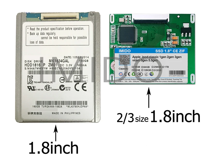 Для 80 Гб iPod classic и 120 ГБ iPod classic логическая плата не поддерживает распознавание более 130 Гб жесткого диска. Таким образом, они совместимы только с 128 Гб SSD.