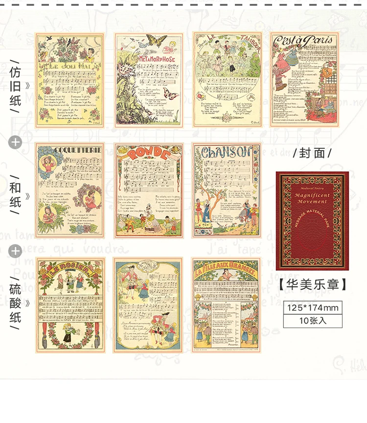 Название: Чжун Ши Цзи Чжи Ши Материал: 3 шт. серная кислота бумага + 3 шт. wahi бумага + 4 шт. имитация бумаги Размер: 174 мм * 125 мм Узор: 8 видов конструкций Количество: 10 шт. Посылка: изысканный чехол для книги Особенности: коллекция удобна Вес: 33 г