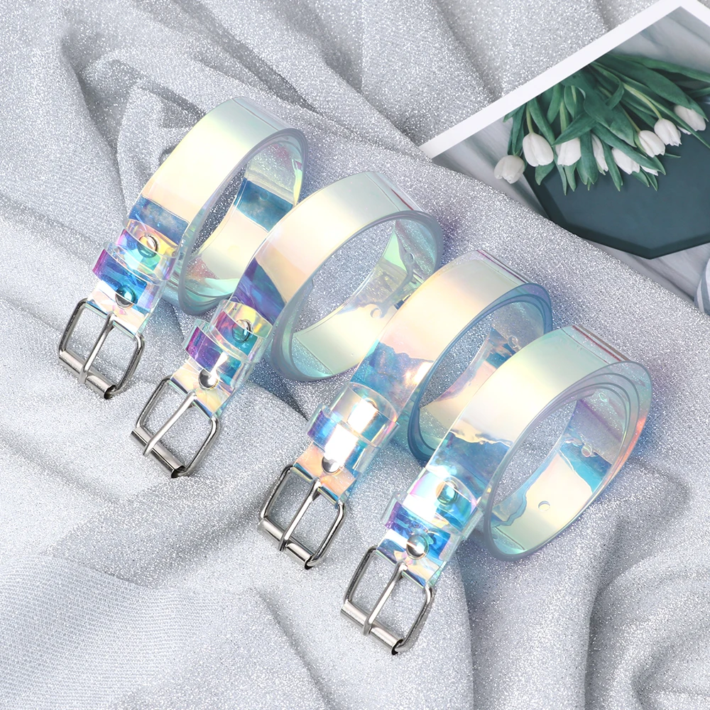 Женский прозрачный полный ремень с люверсами в стиле панк круглые квадратные пряжки широкие пояса женские пластиковые ПВХ брюки джинсы прозрачные ремни