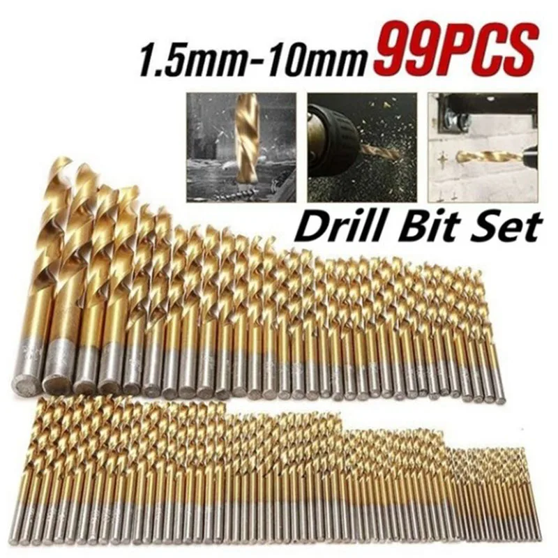 Высокоскоростное стальное титанизированное сверло 99 шт бит 1,5 мм-10 мм