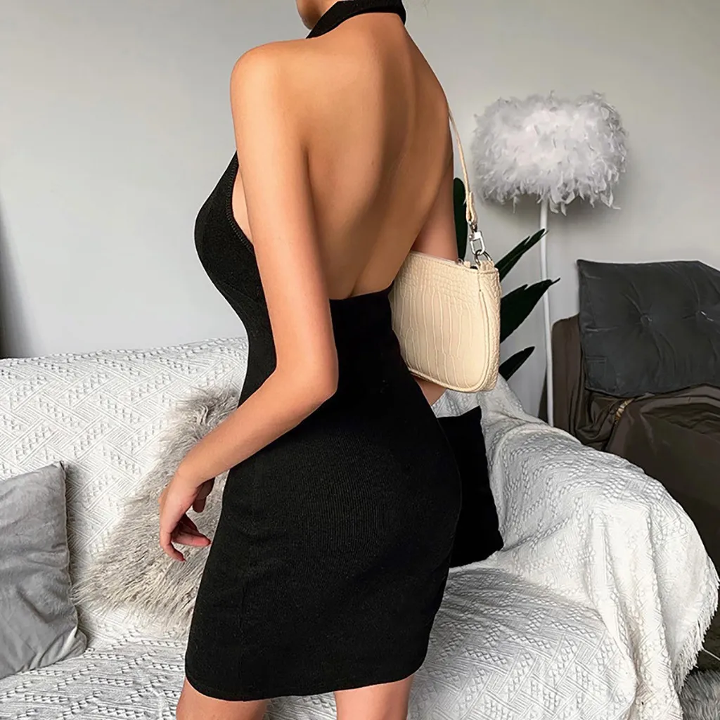 Женское сексуальное платье, платье на бретелях с открытой спиной, однотонное платье с вырезом