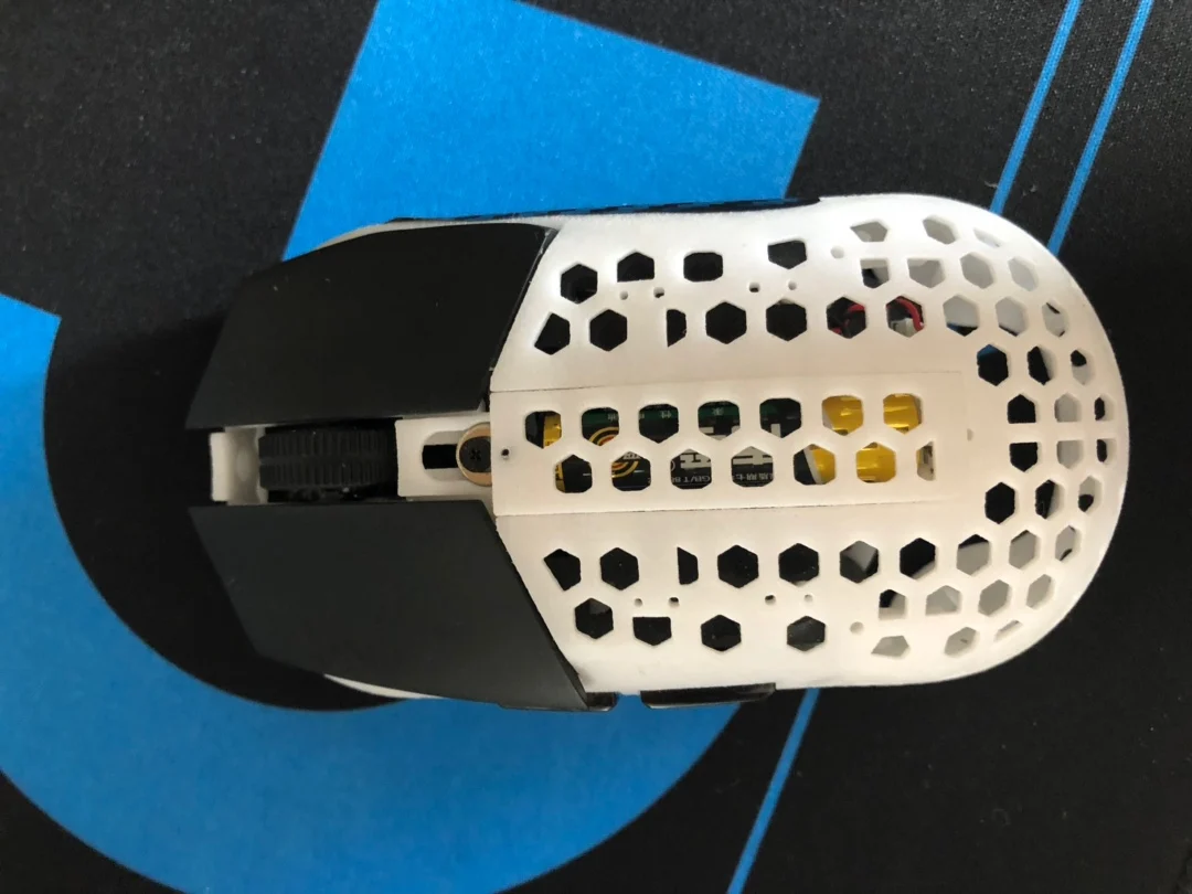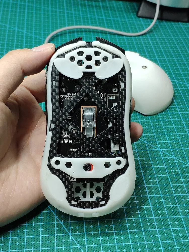 Весь корпус поднимается на 2 мм изнутри, шасси не будет натирать коврик для мыши.