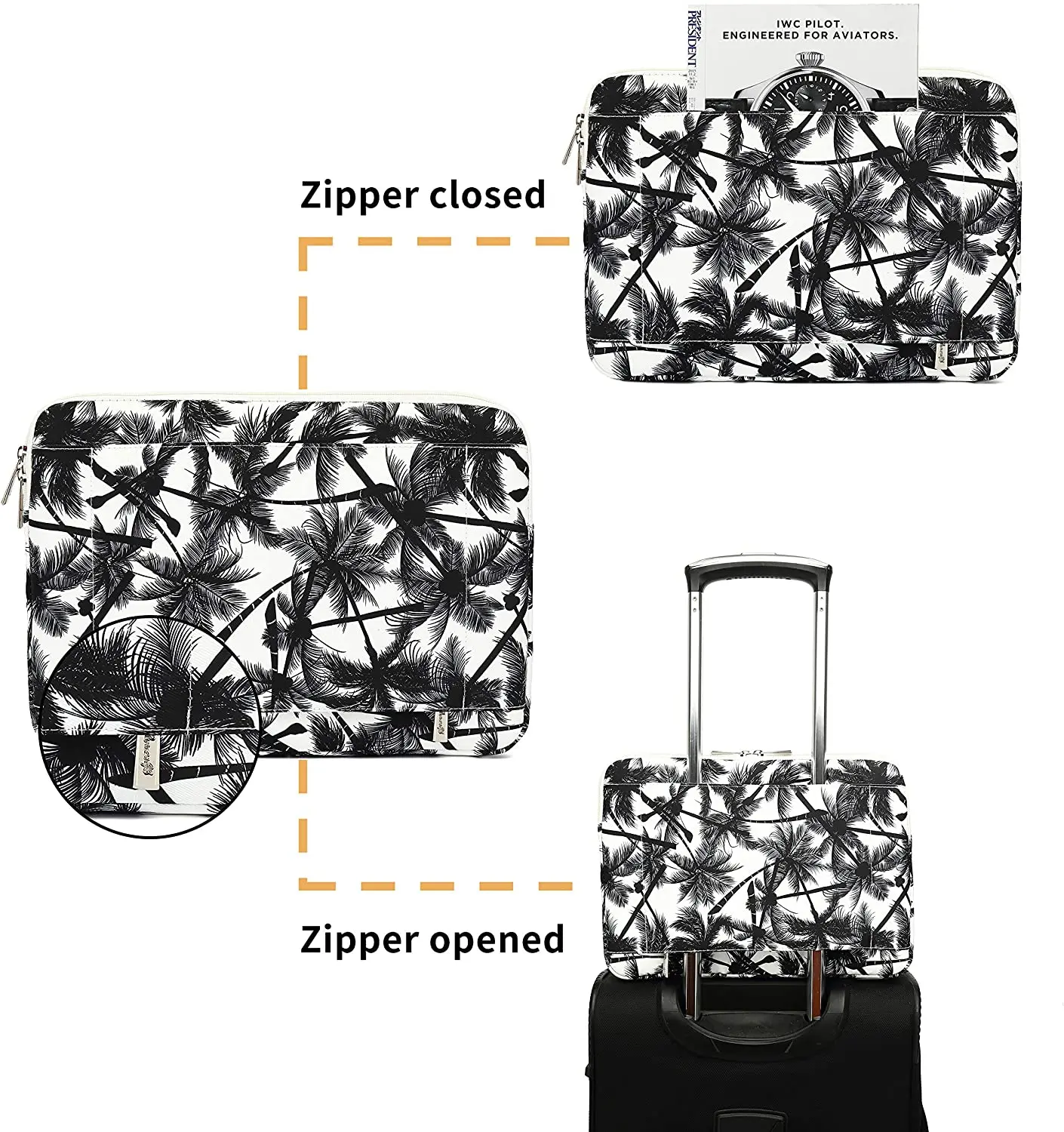 Описание продукта: 1. Защитная система 360 ° обеспечивает наилучшую защиту вашего ноутбука. Круглый отскок материала вокруг сумки ноутбука, держать ваш ноутбук в безопасности под любым углом. Также может быть закреплен на коробке тяги выше 2. Дизайн переднего кармана может держать ручку, телефон, очки, мышь, шнур питания и т. Д. 3. Рукав для ноутбука изготовлен из специального холста, что делает водонепроницаемый ударопрочный вас unquie. 4. Высокое качество молнии Съемник и "u" молния дизайн легко положить ноутбук в рукав. 5. Размеры: 350 мм (Д) x235мм (Ш) x25мм (В) подходит для большинства 13,3 дюймового ноутбука и macbook air 13 и macbook pro 13 (наш чехол для ноутбука достаточно большой, чтобы держать macbook 13 с жестким корпусом) Размер 400 мм (L)x280mm (Ш) x20mm(H) может держать большинство 15,6 дюймового ноутбука и macbook pro 15