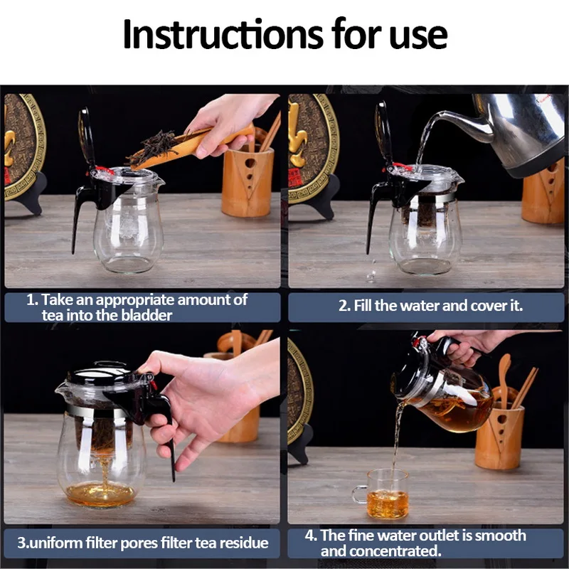 <Легко чистить> заварка может быть удалена, удобно чистить листья чая. Благодаря чему вы можете мыть с водой.