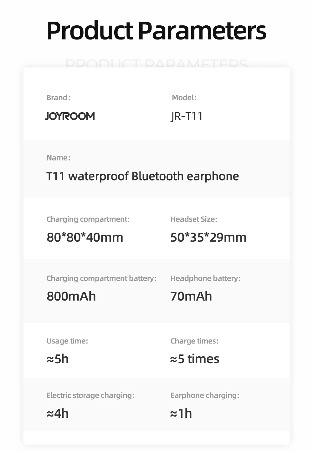 1.T11 с зарядный чехол: более чем 27 часов время работы в режиме 2.T11 (одного заряда): до 12 часов прослушивания музыки