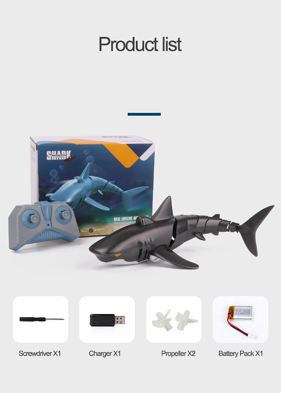 Основные характеристики 1: Он изготовлен из высококачественного экологически чистого АБС-материала с помощью различных процессов, который износостойкий и устойчивый к царапинам, и имеет стабильную защиту от падения. Дизайн как у акулы выглядит реалистично и ярко и популярен среди детей. 2: оснащен бесщеточным двигателем, эффективной работой, низким уровнем шума, сильной мощностью, плавной работой, энергосбережением и чувствительностью. Двойной полностью закрытый водонепроницаемый корпус, эффективно предотвращает утечку воды. Устройство охлаждения циркуляции воды используется для охлаждения двигателя, уменьшения потерь двигателя и продления срока службы двигателя. 3: Пульт дистанционного управления может контролировать движение имитированной акулы вперед, назад, влево, вправо, переключение скорости и т. д., что может воплотить в жизнь реалистичное движение качания, И легко решить проблему попадания на риф, застревания в плавании и опрокидывания лодки. Четырехканальная высокочастотная система дистанционного управления 2,4G имеет дистанцию дистанционного управления 30-40 м, одномашинная одночастотная, поддерживает многократную одновременную работу, И сигналы не мешают друг другу. 4. Оснащен 3,7 в 300 мАч большой емкости перезаряжаемой литиевой батареи, зарядка в течение 30 минут, может поддерживать 20 минут игры, замена батареи проста и быстро. Он подходит для игры в дикой природе, плавающей пародии и хитрых игрушек на воде, а также может использоваться в качестве летней игрушки для бассейна на открытом воздухе. Модель оленя, импортные товары, новинка, 4 канала, высокая имитация, 2,4 г, дистанционное управление, Акула, бассейн, игрушка для детей, бионический пульт дистанционного управления, игрушка.