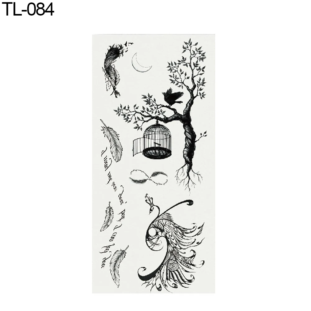 Боди арт съемные с деревом перо птица Мода временные фальшивые татуировки наклейка