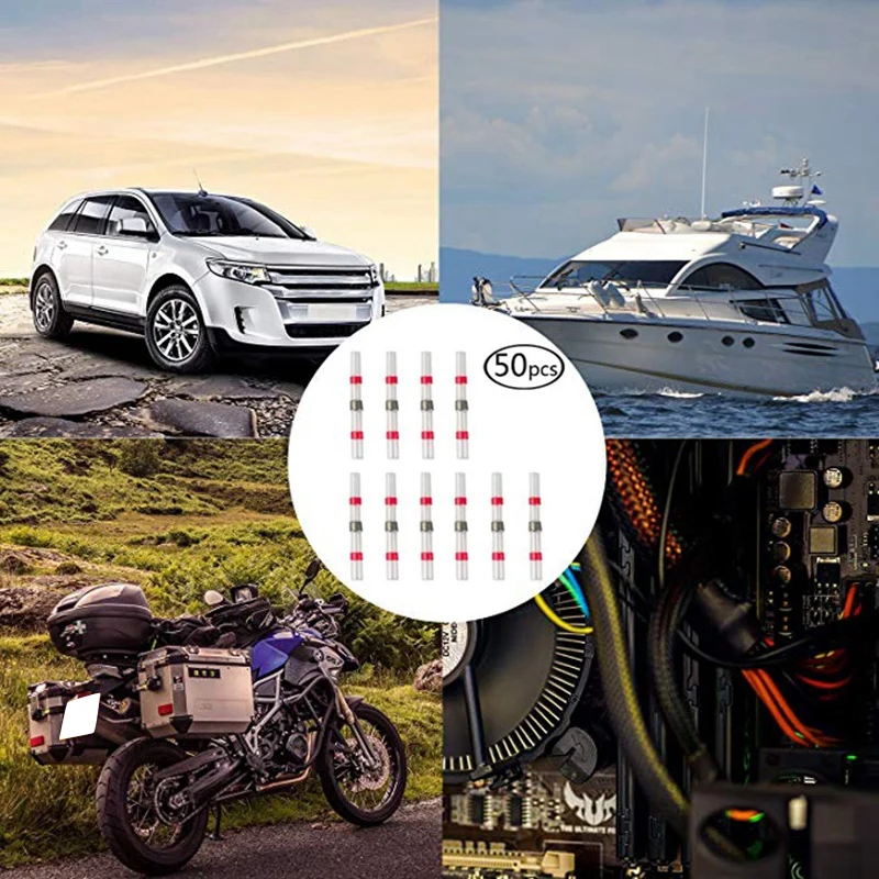 50 шт. соединительные провода с уплотнением для припоя, термоусадочный стыковый соединитель, водонепроницаемые изолированные электрические стыковые клеммы для автомобильных Mari