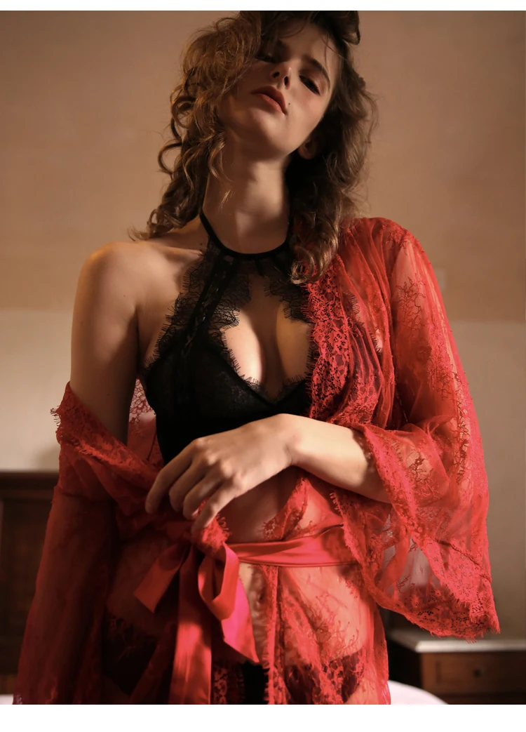 SP & CITY французский романтический сексуальный комплект с бюстгальтером на шею, прозрачное кружевное нижнее белье, стринги для секса, Женский комплект нижнего белья с вырезами