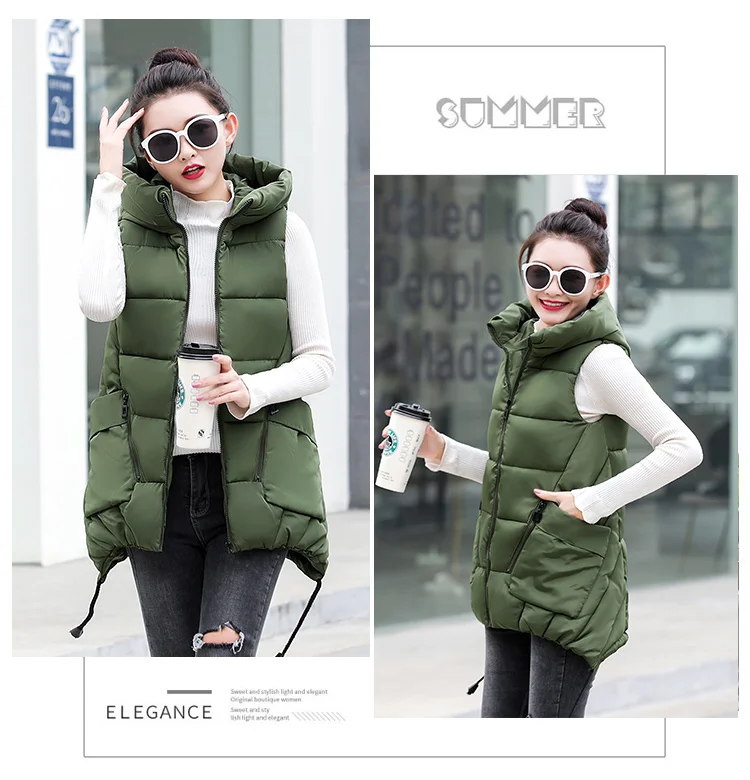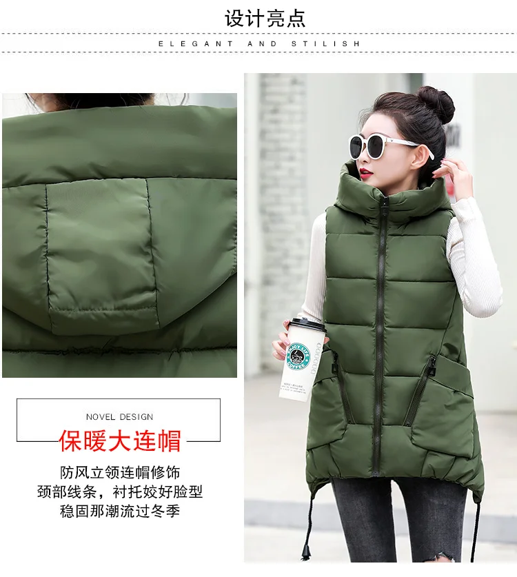 Зимний женский жилет, новый хлопковый жилет без рукавов большого размера, Осенний корейский модный длинный женский жилет с кружевным капюшоном, однотонное Пальто 5XL