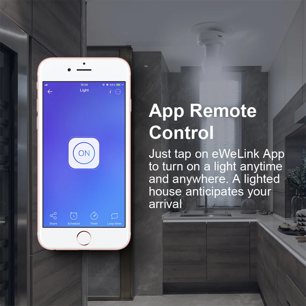 Просто нажмите на приложение, чтобы включить светильник в любое время и в любом месте. Освещенный дом ожидает вашего прибытия