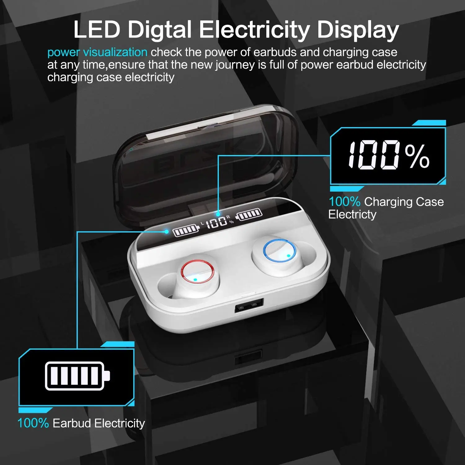 【 Простота в эксплуатации 】 bluetooth-наушники сохраненные данные показывают мощность каждого бутона, последняя модель на 2019 год, Оснащен одно шаговую и по-новому Начните автоматического включения и отключения питания технологии, после того, как вы берете на себя наушники из зарядный чехол, он будет зафиксировано какое-либо движение и пара друг с другом автоматически, когда поместите чехол для зарядки, он автоматически выключится и зарядится до полной зарядки.
