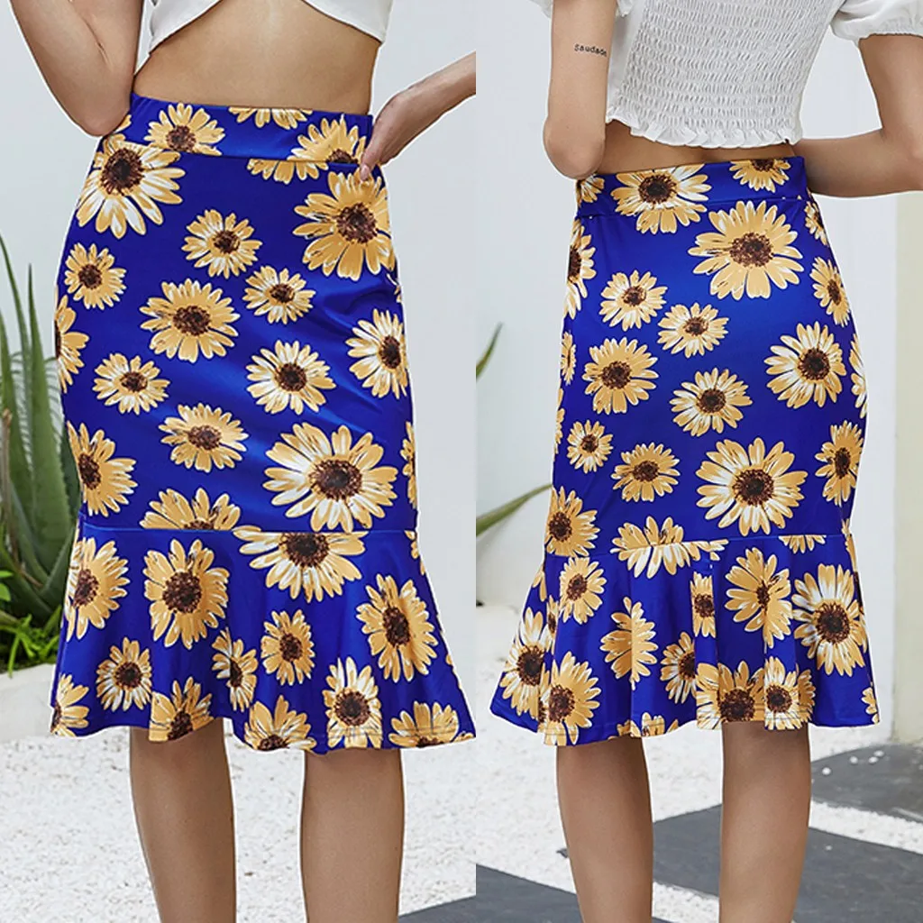 Модная женская юбка с цветочным рисунком и рыбий хвост, летняя женская пляжная юбка с высокой талией для отдыха