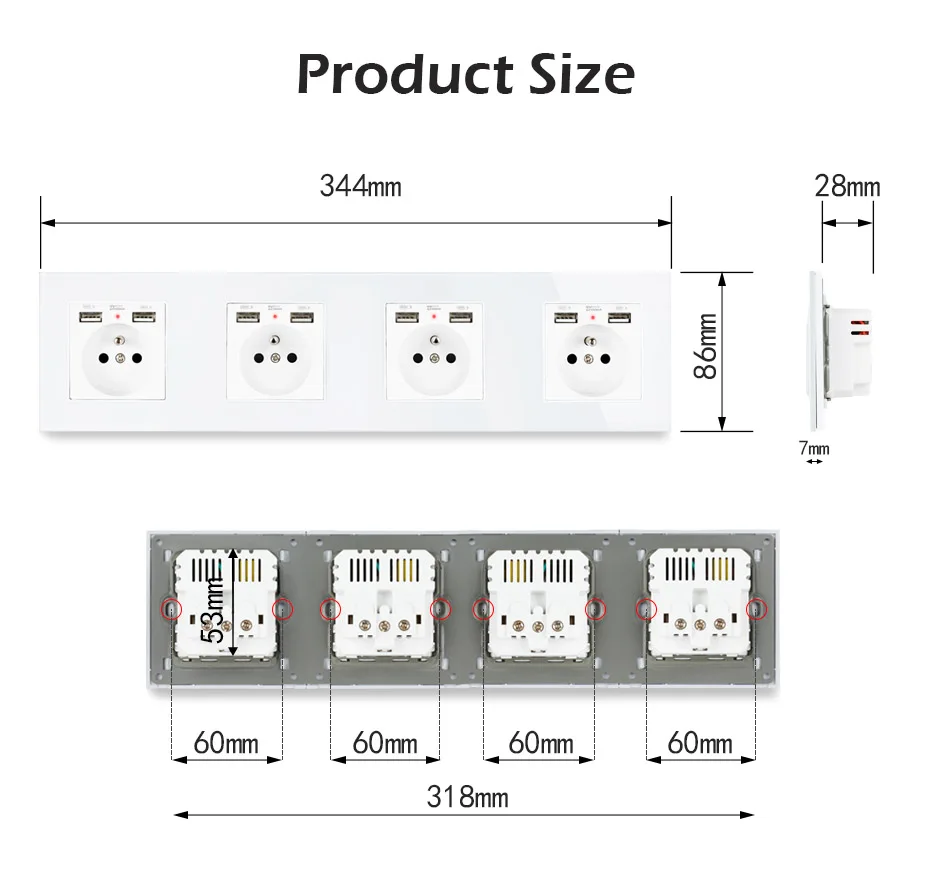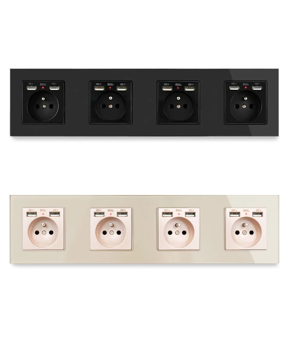 UNKAS Золотая стенная Хрустальная стеклянная панель 4 банды розетка заземленная 16А французский стандартный выход с 8 USB на мобильный телефон