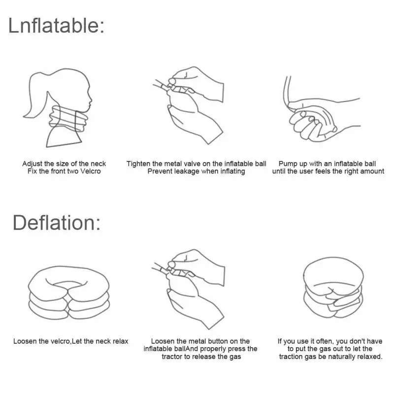 Как использовать: надувной опорный кронштейн для шеи легко надувать и сдувать. Рекомендуется использовать его в течение 20-30 минут или 1-3 раз в день.