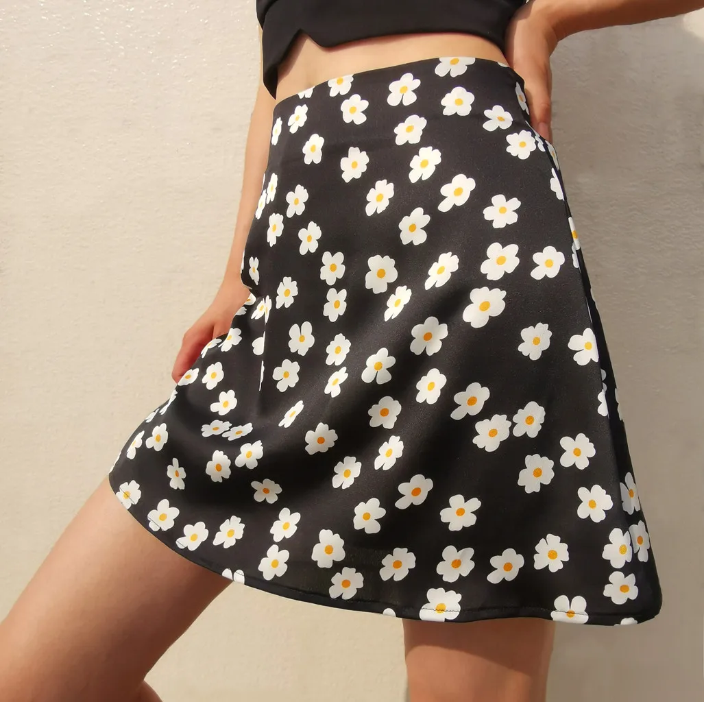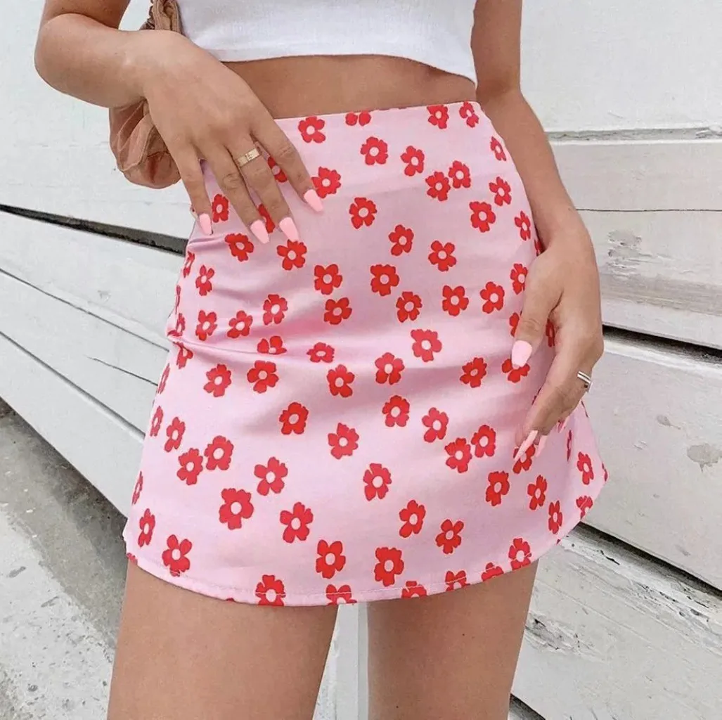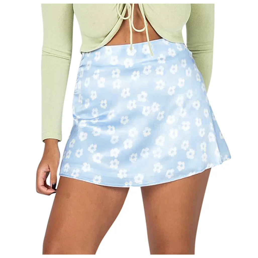 Женская летняя повседневная короткая пляжная юбка с высокой талией и цветочным принтом на молнии