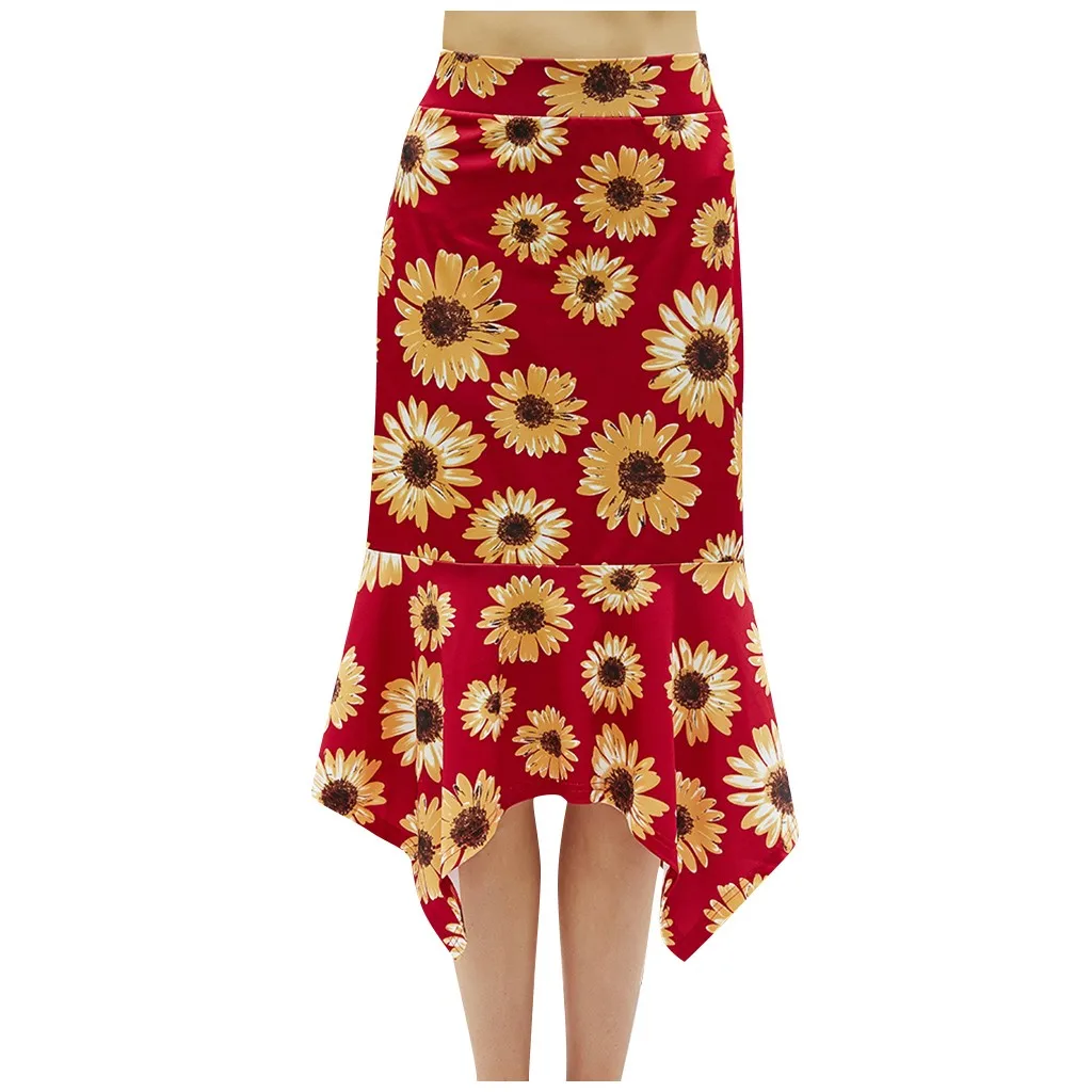 Модная женская юбка с цветочным рисунком и рыбий хвост, летняя женская пляжная юбка с высокой талией для отдыха