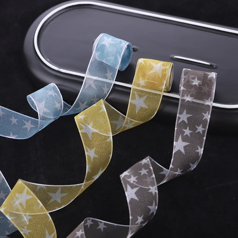 Star Pattern Organza Ribbons For DIY HairBows Crafts Fabric Baby Child Headwear Cartoon Printed Tapes 100yards/lot 10 16 25 38mm
