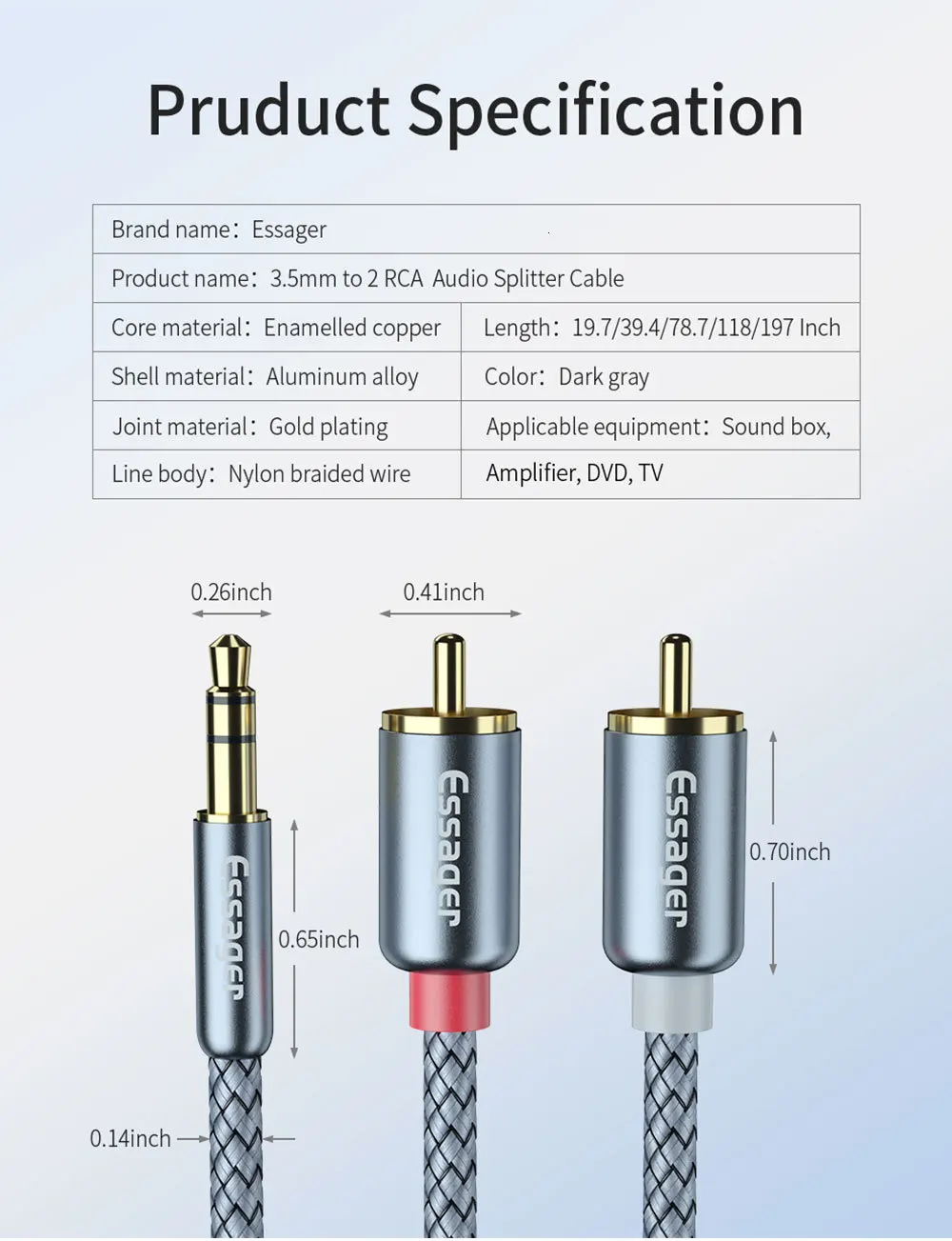 Название продукта: essager волшебный звук 3,5 мм отложным воротником двойной лотос головки RCA аудио кабель-адаптер