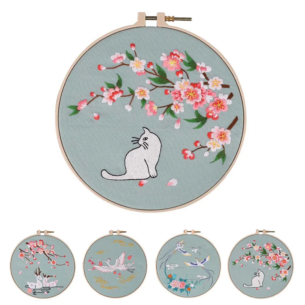 1 набор комплектов для вышивки (включает в себя: ткань для вышивки, иглы, нитки, рисунки, обруч для вышивки)