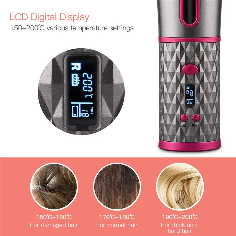 【Fast heating】профессиональный турмалиновый керамический бочонок, быстро нагревается и дает вам гладкий, массивный блеск и локоны без всех повреждений. 【Жк-дисплей 】 большой светодиодный дисплей обеспечивает четкую температуру, направление и таймер, он обеспечивает более читаемое и удобное использование. 【Efficient & safe】наши бигуди можно быстро нагревать и его беспроводной дизайн может максимизировать эффективность моделирования. Он оснащен безопасным и нетоксичным изоляционным материалом внутри плойки, который может защитить вас от ожогов при использовании. 【 Регулировка температуры/таймера/направления: 150-200 ℃ выбор температуры, 8-18s Авто щипцы для завивки, а также направление завивки (слева и справа) вместе позволяют легко образовывать идеальные свободные или тугие локоны, экономя много времени. 【USB аккумулятор и зарядное устройство 】 встроенный литий-ионный аккумулятор емкостью 5000 мАч обеспечивает супер удобное беспроводное использование. Между тем он также может быть использован в качестве банка питания. 【Простота в использовании и портативность ствол автоматически вращается вокруг и обертывает секцию волос в камеру для завивки. Легко носить с собой во время путешествий, можно завивать волосы в любое время и в любом месте, вдали от неприятностей с линией.