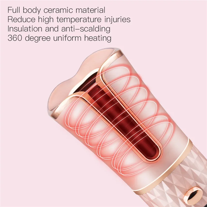 1: Беспроводная зарядка, компактный размер, легко носить с собой. 2: 30 секунд быстрого нагрева. Автоматические щипцы для завивки 3: керамическая катушка обладает стабильными свойствами при нагревании, длительной укладке и трехмерном динамическом движении. 4: ЖК-дисплей, 6 видов температуры могут быть выбраны для удовлетворения различных потребностей в качестве волос. 5: 6 настроек времени моделирования, вы можете переключить время по желанию. 6: двухслойный Теплоизоляционный корпус, керамический материал всего тела, снижает травму при высоких температурах, теплоизоляцию и анти-ожоги. Керамическая катушка нагревается равномерно