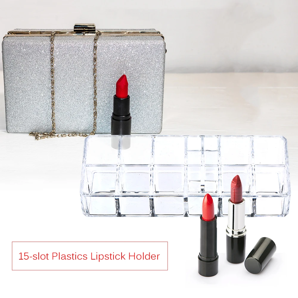 Convenient Design: its open design and transparent color enables you to see and grab what you need easily and quickly; non-slip shims on the bottom make it stand steadily though on uneven ground. And comes with 15-slot lipstick holder(11 big slots and 4 small slots), it helps to keep your lipstick separated and organized.