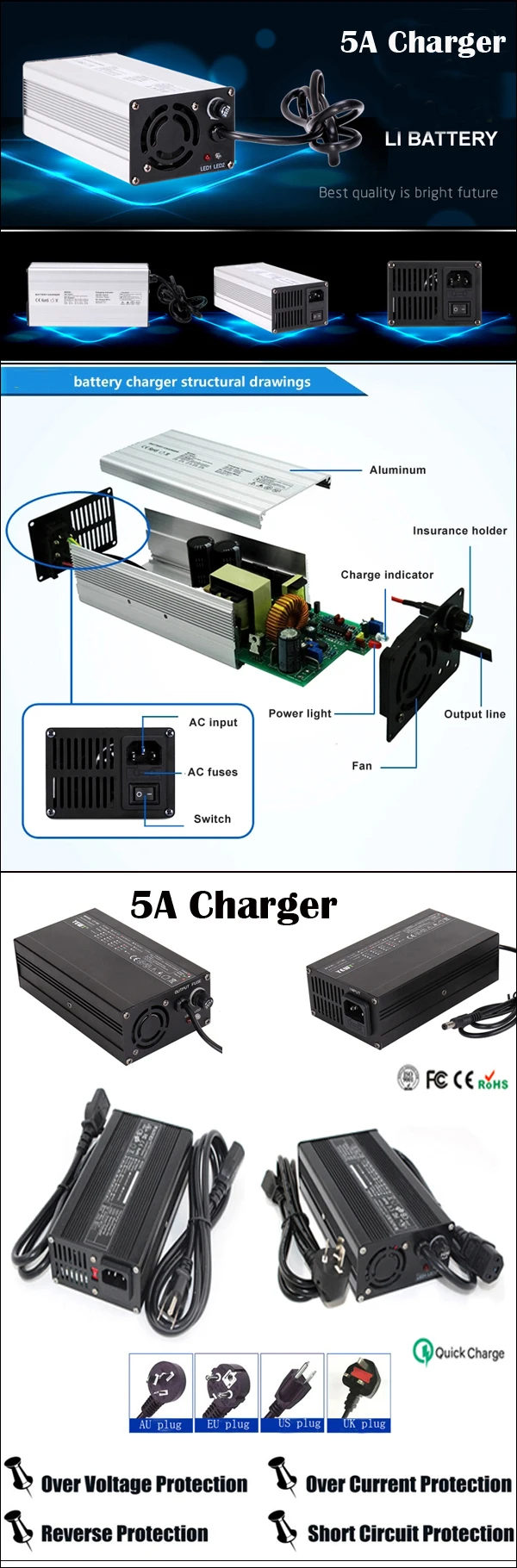 3. Зарядное устройство (58,8 V 2.0A 100-240V 50/60HZ, США, Великобритании, Европы, Австралии, штепсельная вилка европейского стандарта)