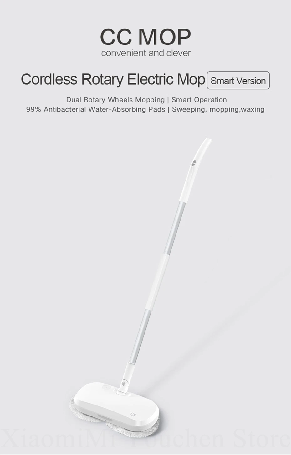 Устойчивые пятна легко удаляются, кроме того, что значительно увеличивает скорость уборки, CC MOP еще больше улучшает качество уборки, двойные моющие колеса на 200 об/мин делают каждый счет чистым. Он может тщательно очистить небольшие зазоры на полу.