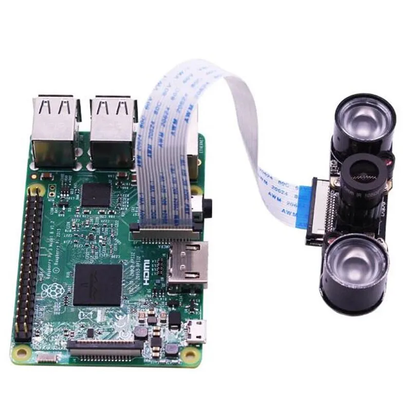 Описание: Эта камера ночного видения 5 МП для Raspberry Pi совместима с платой 4B/3B +/3B/2B. Вы можете расширить инфракрасное освещение. Он поставляется с IR-CUT для решения проблемы дневного цвета инфракрасных камер. Кольцо фокусировки можно регулировать в соответствии с положением объектов. 4 Винтовых отверстия используются для крепления. Добавление инфракрасный заполняющий светильник может решить эту проблему, что на картинке не понятно в темное время суток, потому что светильник слишком слабый, и камера яснее в темное время суток. Инфракрасный заполняющий светильник с подключением к фиксированному интерфейсу заряжен, поставляется с фоторезистором, который может автоматически регулировать яркость инфракрасного светильник в соответствии с тьмой окружающей среды. Детали Пиксель: 5 Мп Сенсор: OV5647 CCD Размер: 1/4 дюйма Диафрагма (f): 1,8 Фокусное Длина: 3,6 Диагональный угол: 60 градусов Лучшее разрешение датчика: 1080p Внешних источников питания: 3,3 V Посылка список -- Только камеры: 1 x Камера 1 х 15 см Камера кабель -Ночная версия: 1 x Камера 1 х 15 см Камера кабель 2 x светодиодный фонарик