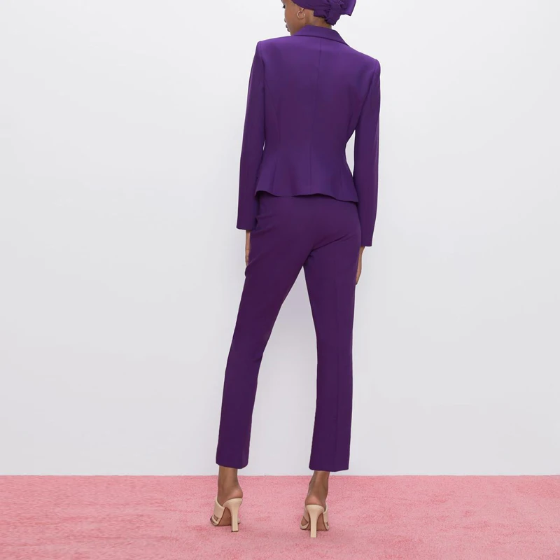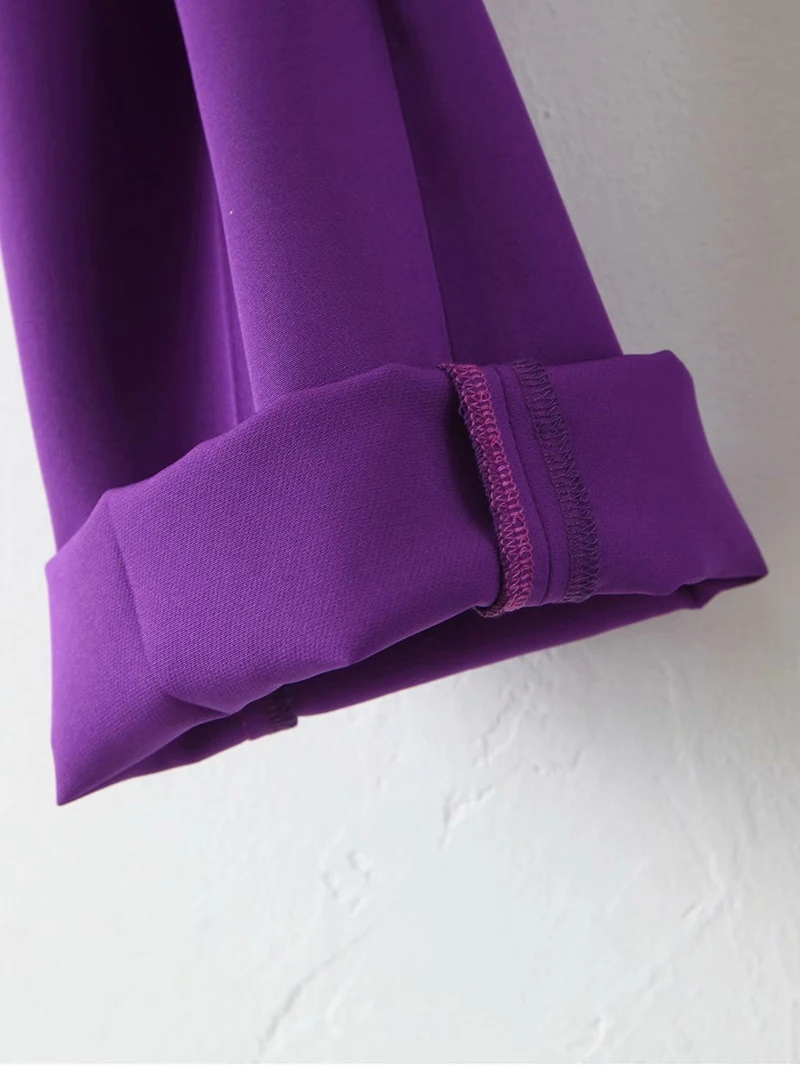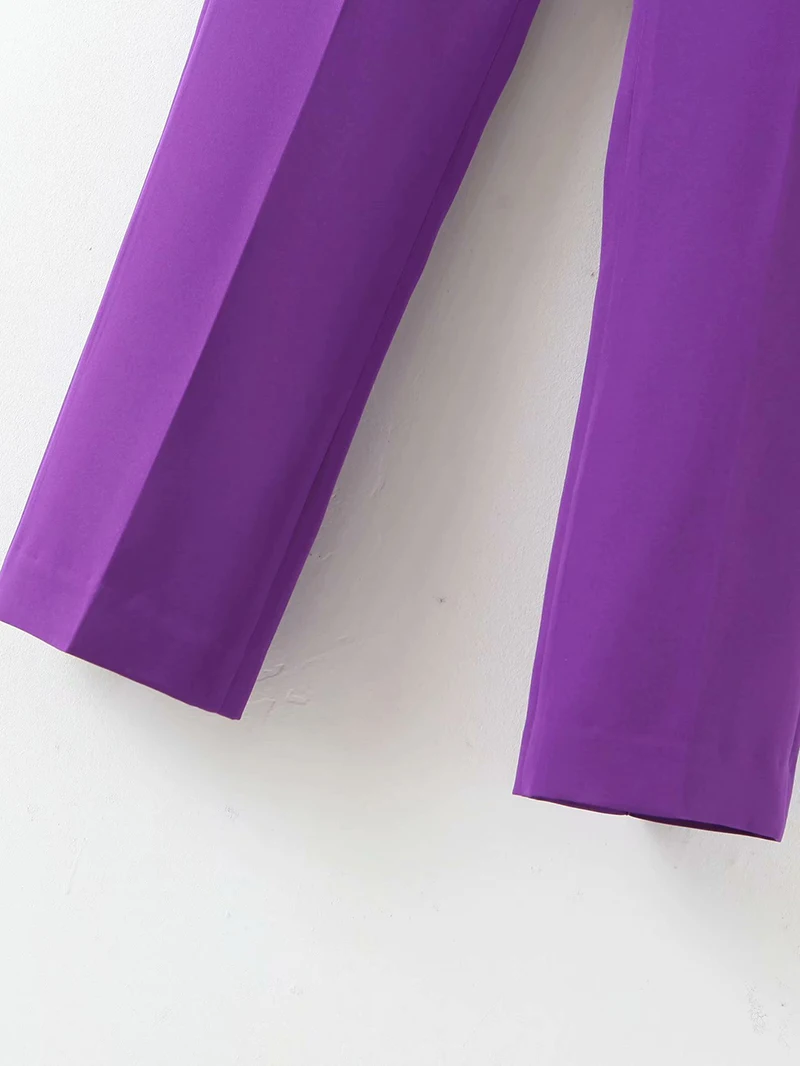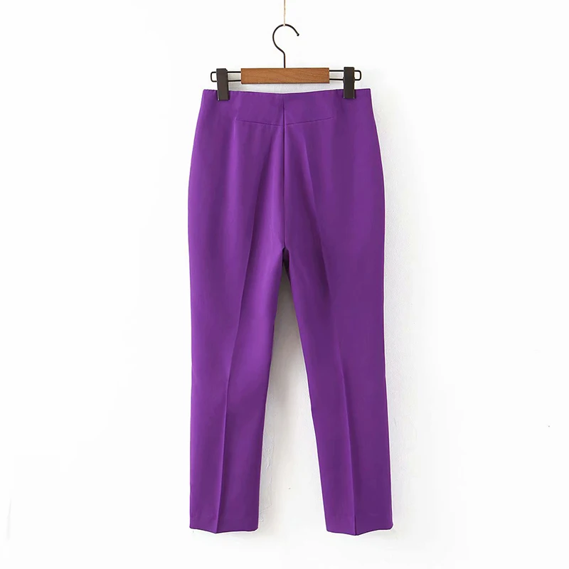 Новинка 2020, Женский комплект 2 шт., костюмы, длинные штаны с высокой талией, шаровары, однотонные, повседневные, OL, летние, до щиколотки, фиолетовые брюки, костюмы