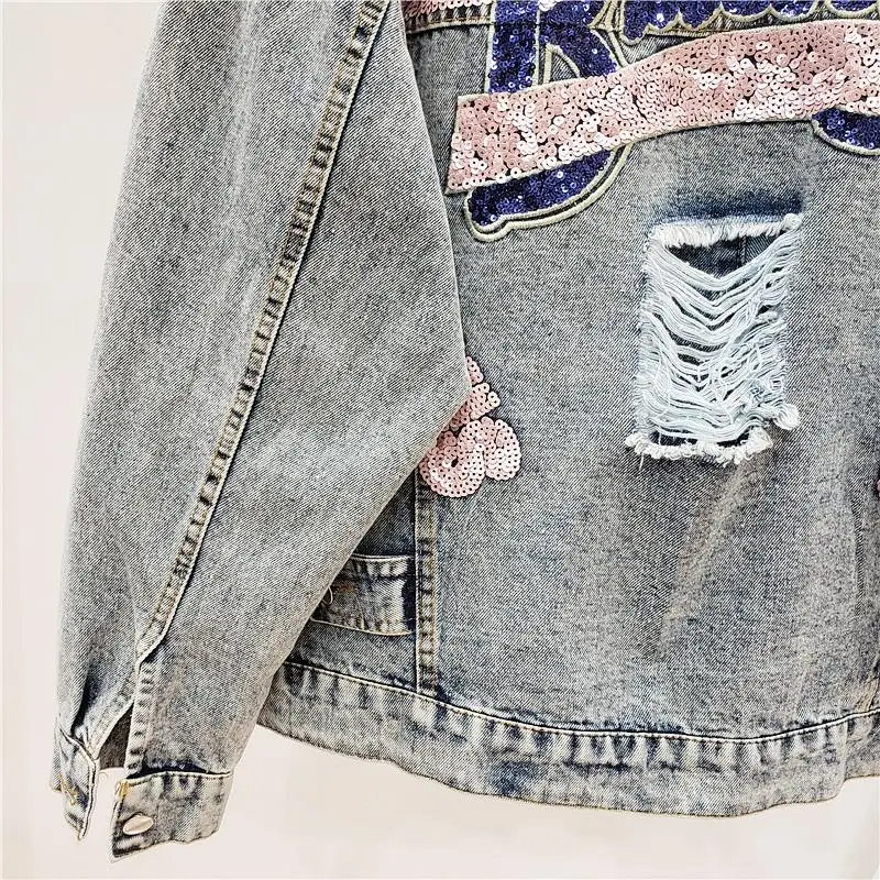 Женская джинсовая куртка в Корейском стиле с дырками и надписями, базовое винтажное пальто, свободная джинсовая куртка, верхняя одежда, женская уличная одежда