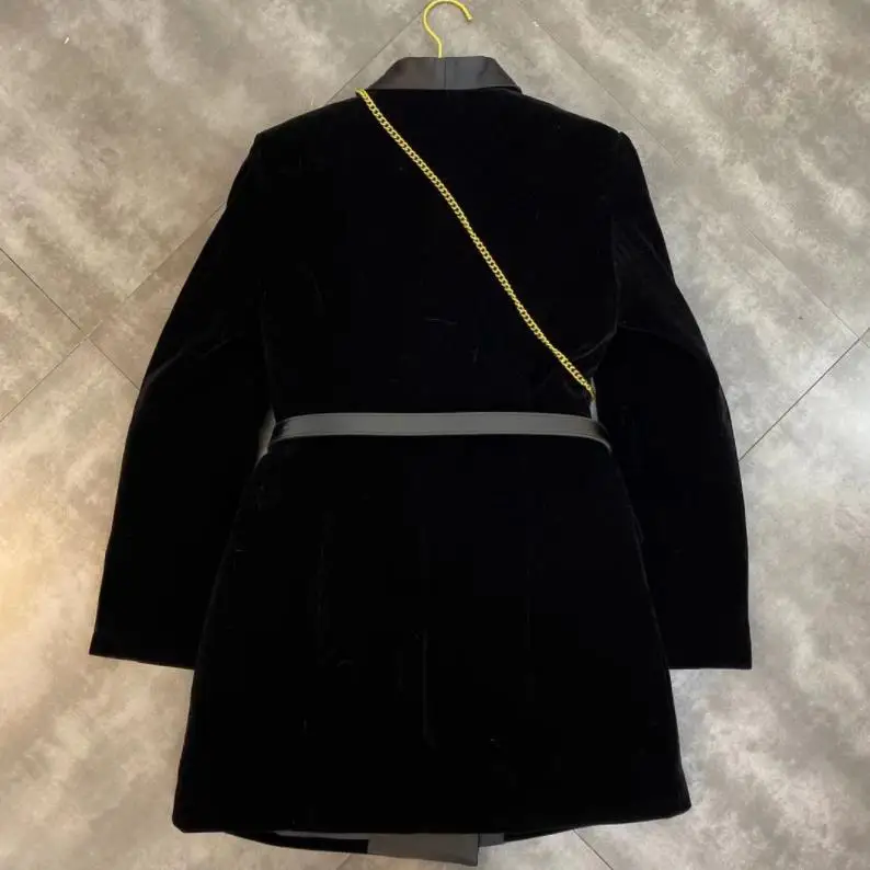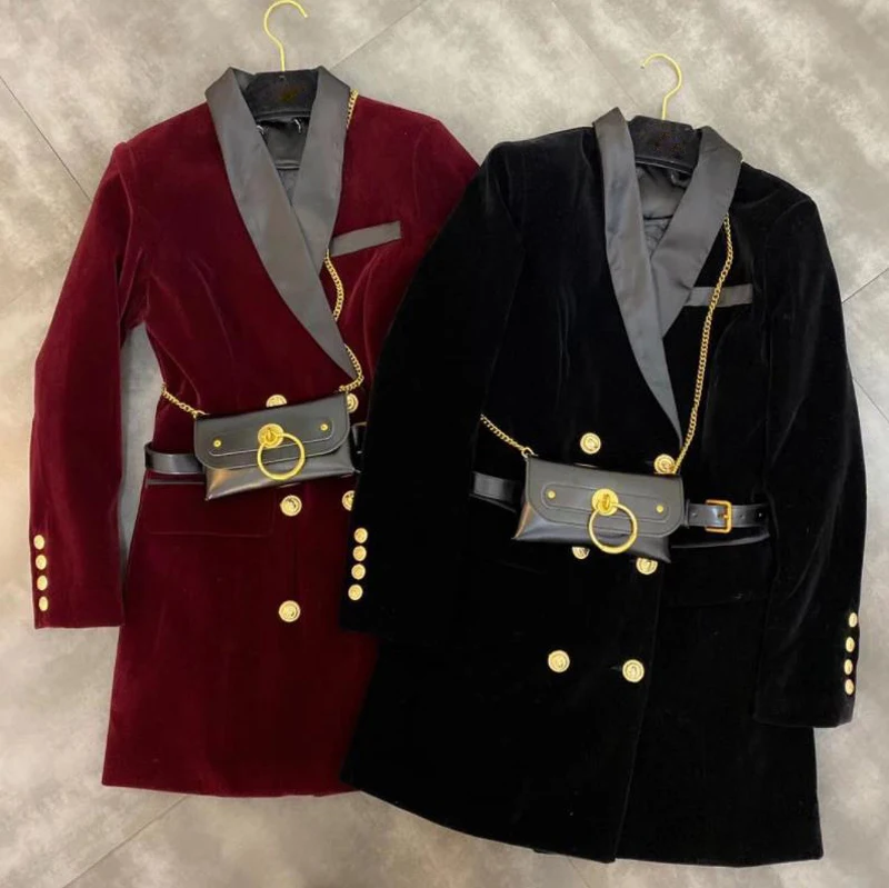 Женский блейзер, бархатный пиджак, двубортный, длинный рукав, женский, черный, Блейзер, пальто, ремень, сумка, Женский приталенный пиджак, платье