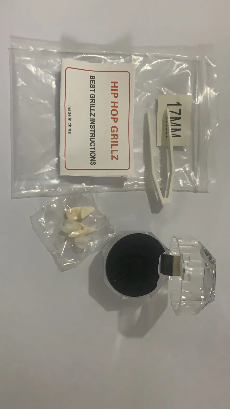 Package contains:3 pairs of braces (a pair of 13mm, 15mm, 17mm each size) and 3 pairs of gums,a pair of tweezers,A plastic crystal box