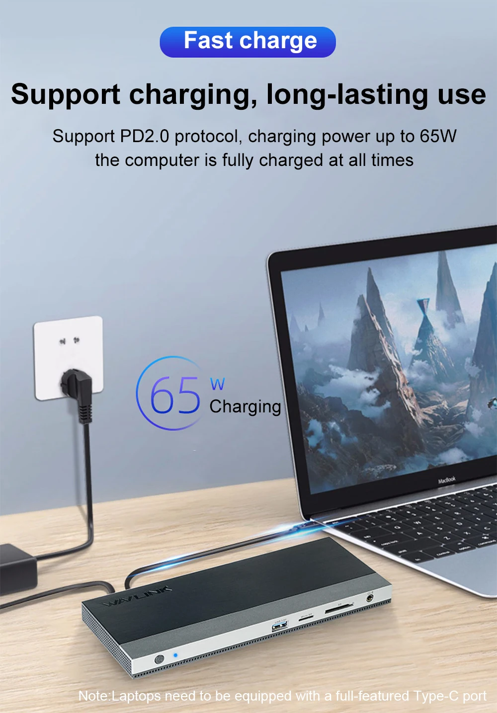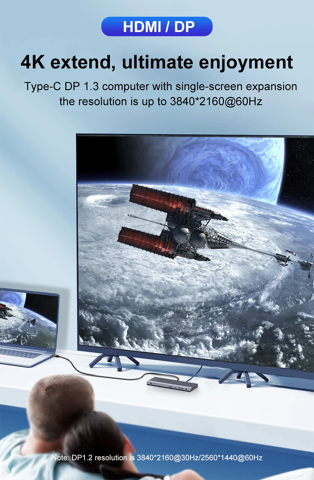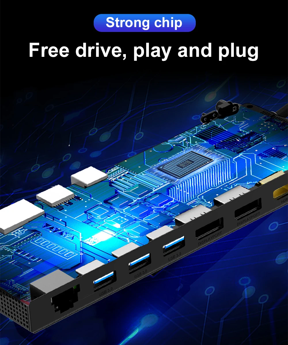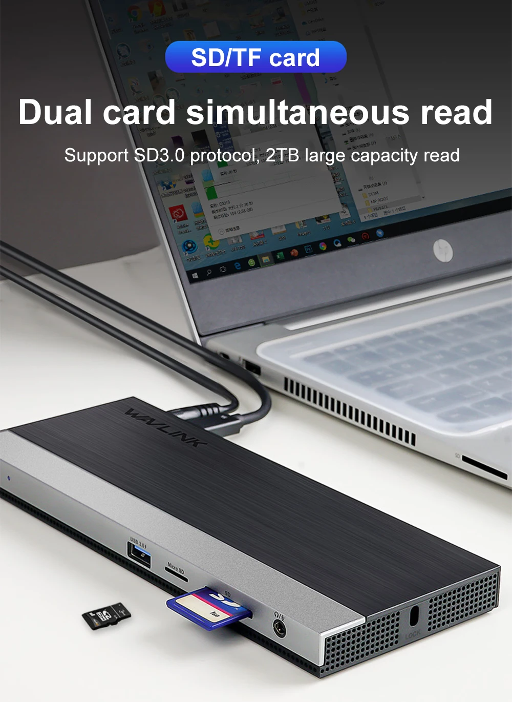 Характеристика товара: (1 ). Совместимость с тип-c USB3.1 Gen2 полная спецификация ПК компьютера. (2 ). Обеспечивает подачу питания USB до 85 Вт для подзарядки вверх. (3 ). DisplayPort поддержка V1.4; HDMI порт Поддержка HDMI V2.0 (4 ). Поддержка тройного дисплея, максимальное разрешение до 1920x1080 @ 60 Гц (HBR3 DP1.3) (5 ). Поддержка двойного дисплея, максимальное разрешение до 2560x1440 @ 60 Гц (HBR3 DP1.3) (6 ). Поддержка одного дисплея, максимальное разрешение до (HBR3 DP1.3) (7 ). Сборка в сети Gigabit Ethernet RJ-45 обратного 10/100 Ethernet. (8 ). Встроенный 4-контактный разъём Jack для стерео аудио выход и микрофон в такой стране, как. (9 ). Встроенный комбо SD / TF кард-ридер SD V3.01 Поддержка SDHC / SDXC емкостью до 2 ТБ. (10 ). Четыре порта USB 3,0 Type-A с одним портом имеют быструю зарядку BC1.2. (11 ). Поддержка ОС Windows 7 / 8 / 10; Max OSX 10 или последней версии.
