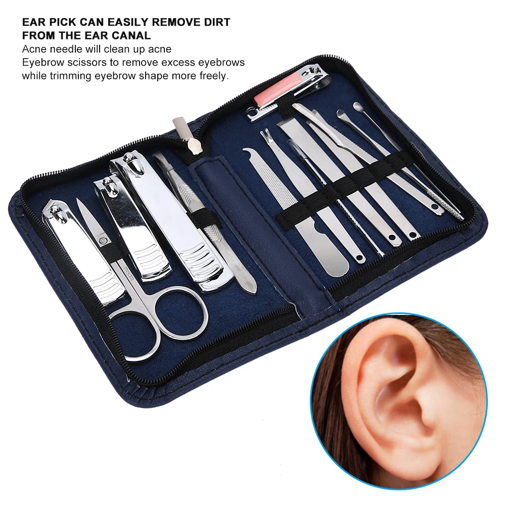 1 x машинка для стрижки ногтей с большой плоской головкой 1 x машинка для стрижки ногтей с плоской головкой 1 x коническая машинка для стрижки ногтей 1 x розовая машинка для стрижки ногтей 1 x Ножницы для бровей 1 x зажим для бровей 1 x пилка для ногтей 1 x Ушная палка 1 x Толкатель для омертвевшей кожи 1 Игла для акне 1 x спиральный ушной пинцет 1 x конический педикюрный нож 1 x нож для педикюра с плоской головкой 1 х длинный нож