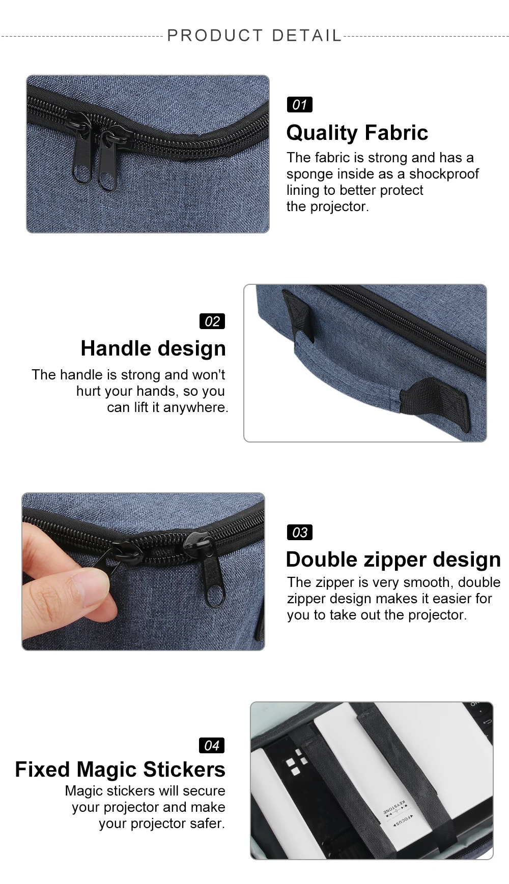 Прочные ручки для удобной переноски. Разработан как чехол для переноски, а также сумка для хранения, поэтому вы можете легко взять видеопроектор и аксессуары повсюду.