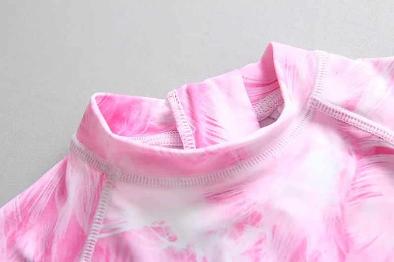Цельный купальник с короткими рукавами и принтом «Город Thresds» розового цвета с изображением фламинго для девочек, дизайн с молнией сзади, Солнцезащитный купальник, Быстросохнущий